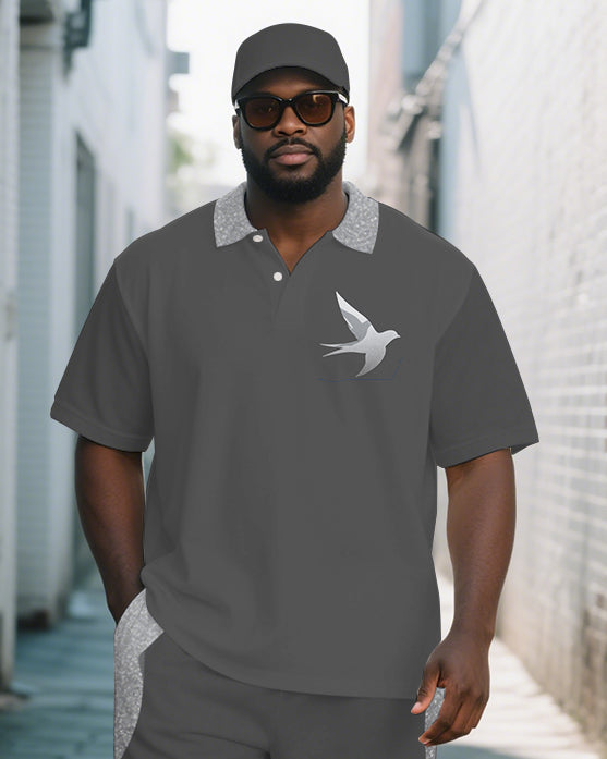 Big Men's Simple White Dove Cartoon Printed Short-Sleeve Polo Shirt and Shorts Set