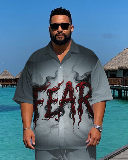 Big Men's Smog Effect Abstract FEAR Lettering Short-Sleeve Shirt and Shorts Set