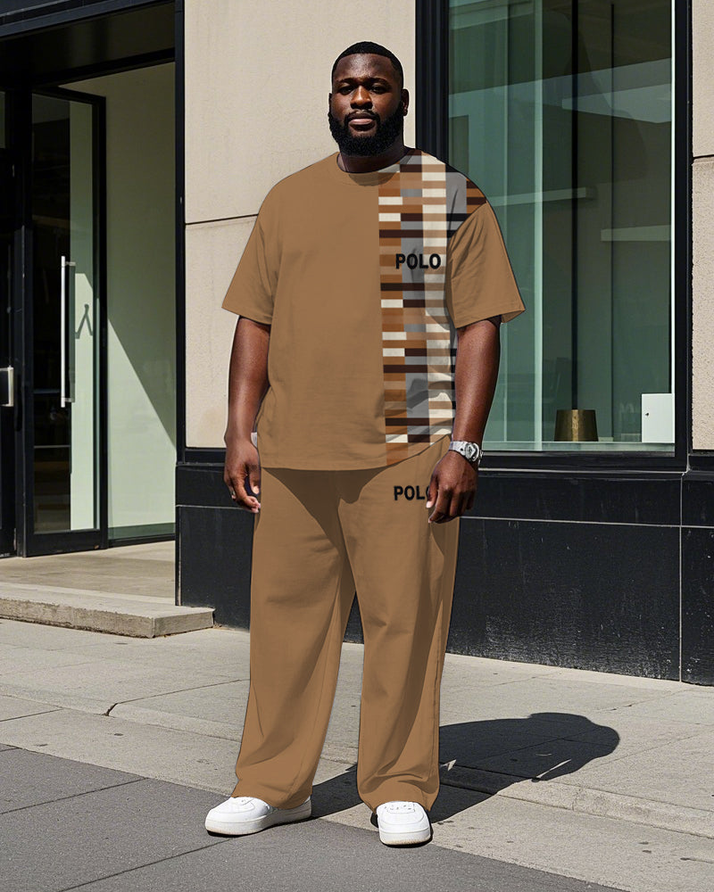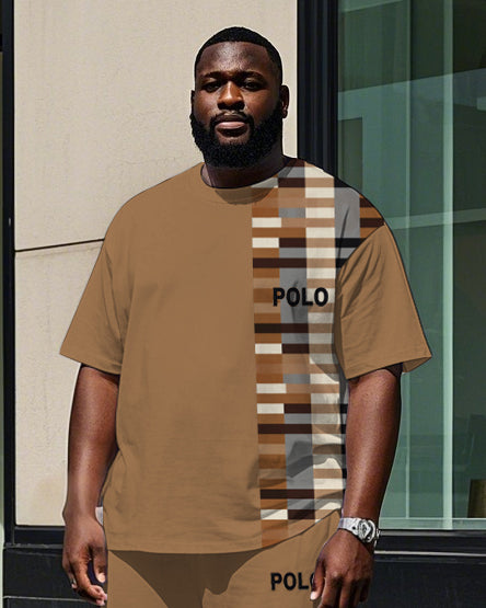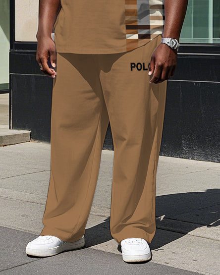 Big Men's Splicing Regular Plaid Style POLO Printed Short Sleeve T-shirt Pants Set