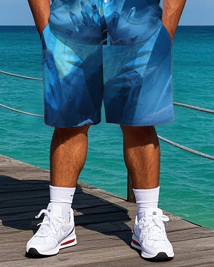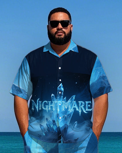 Big Men's Splicing Style Glacier NIGHTMARE Lettering Short-Sleeve Shirt and Shorts Set