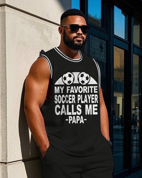 Big Men's Sport Fashion Funny Sayings & Football Printed Basketball Vest and Shorts Set