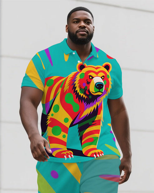 Big Men's Street Fashion Funny Bear Cartoon Casual Short-Sleeve Polo Shirt & Shorts Set