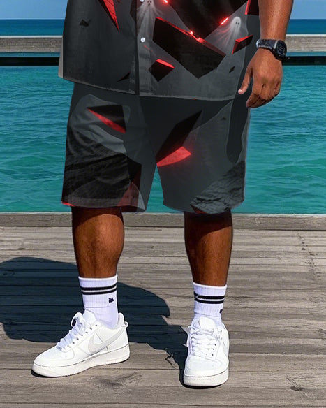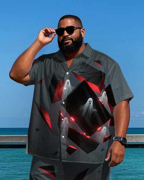 Big Men's Street Fashion Ghost and Blocks Bold Style Printed Short-Sleeve Shirt and Shorts Set