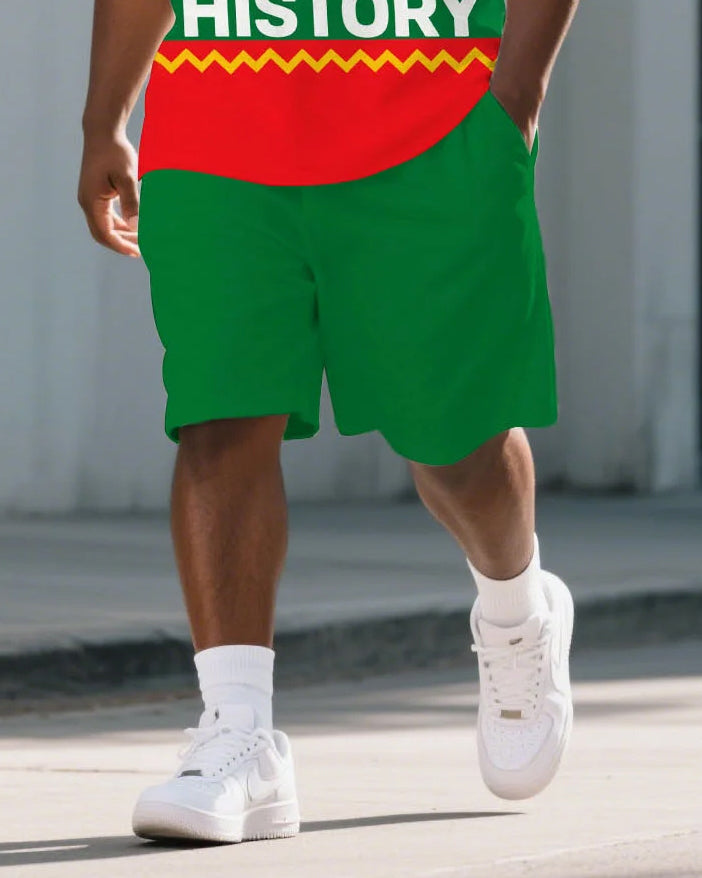 Big Men's Stripe Splicing Style BLACK HISTORY Juneteenth Theme Short Sleeve Polo Shirt Shorts Suit