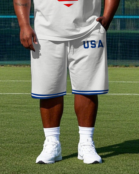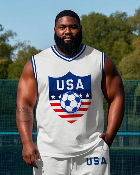 Big Men's USA Uniform Football Pattern Printed Round Neck Basketball Vest and Shorts Set