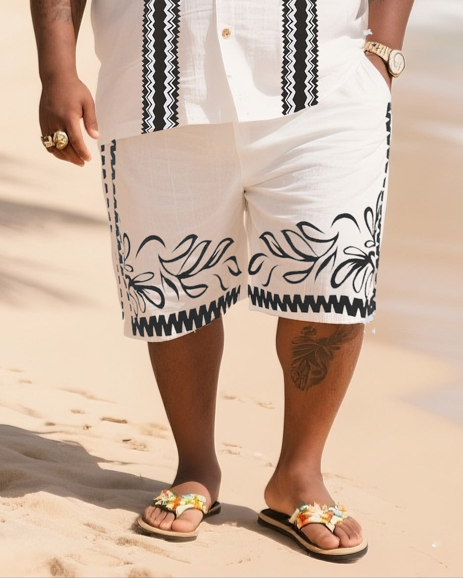 Big Men's Vacation Casual Bohemian Style Side Texture Short Sleeve Shirt Shorts Suit