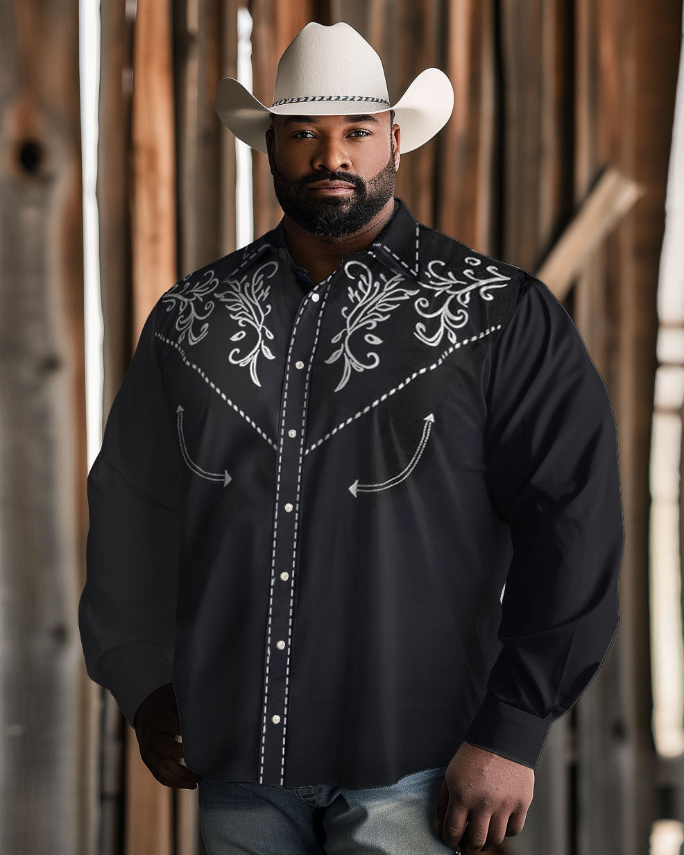 This features elegant white floral shoulder prints that bring a touch of rustic charm. The loose fit ensures comfort for all-day wear and is big and tall-friendly. Its simple yet refined design perfectly captures Western flair while offering a relaxed and stylish look.