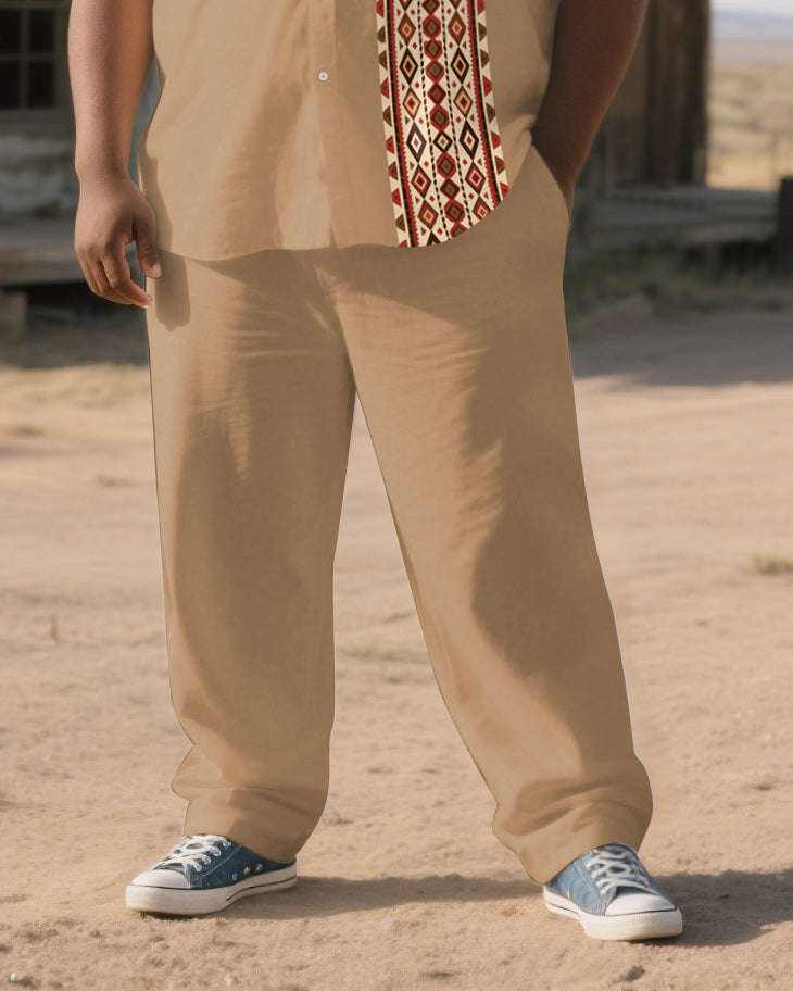 Big Men's Western Splicing Geometric Pattern Theme Casual Short-Sleeve Shirt Trouser Sets