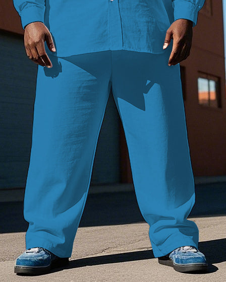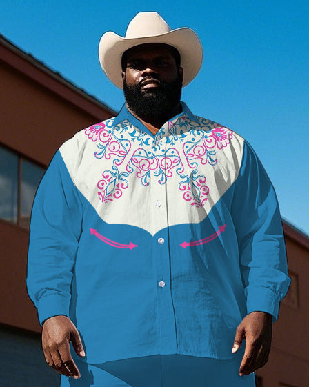 Big Men's Western Style Cowboy Fashion Embroidery Printed Long Sleeve Shirt Pants Set