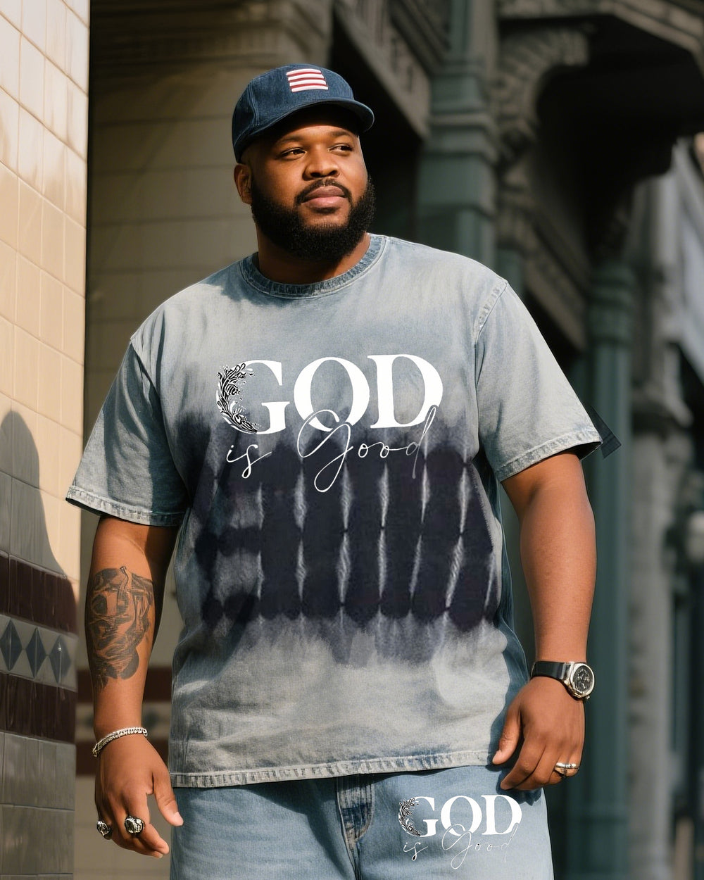 Big Shirt Print Short Sleeve Shorts Denim Suit