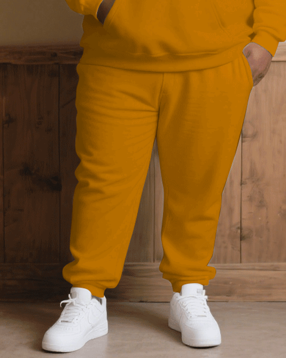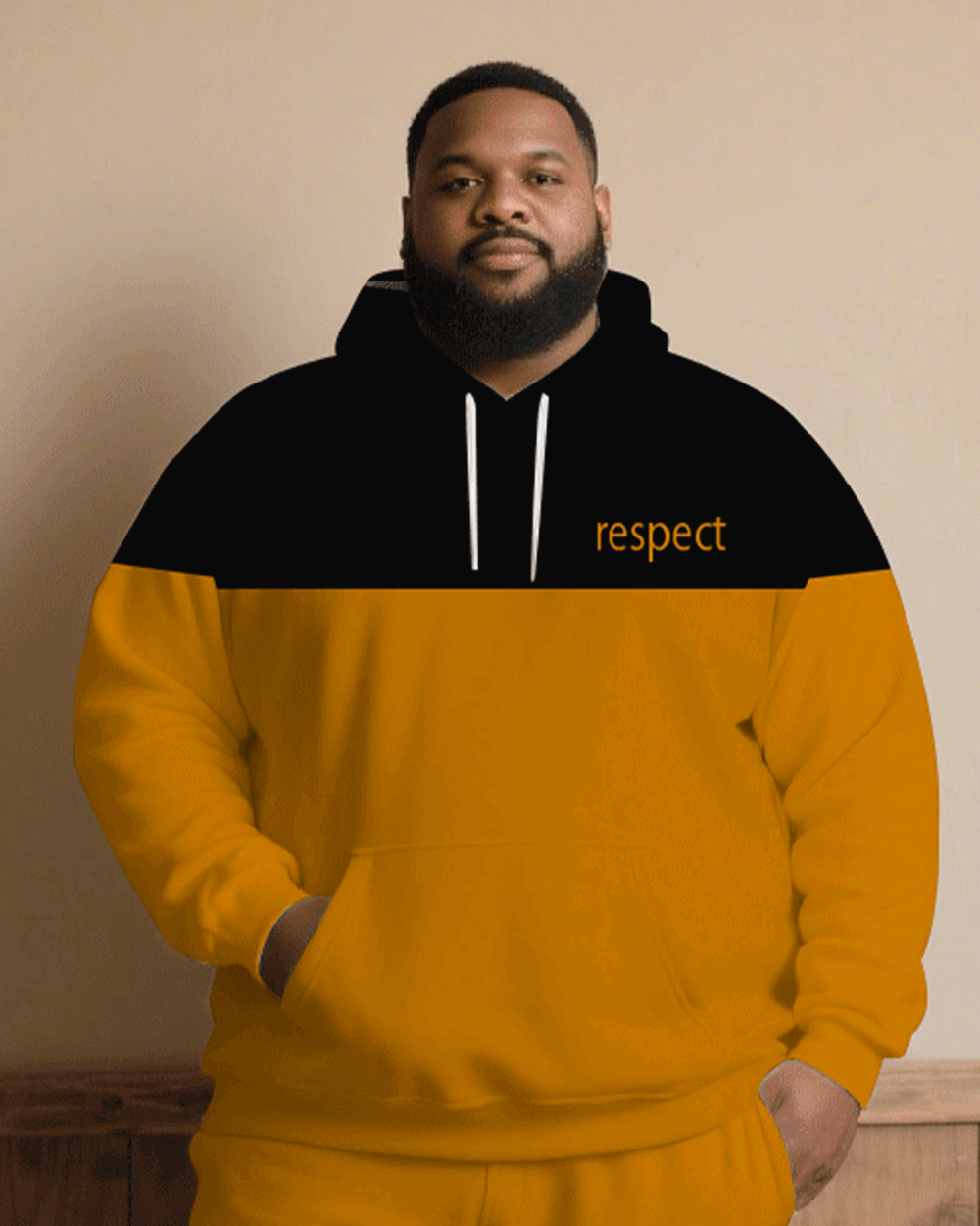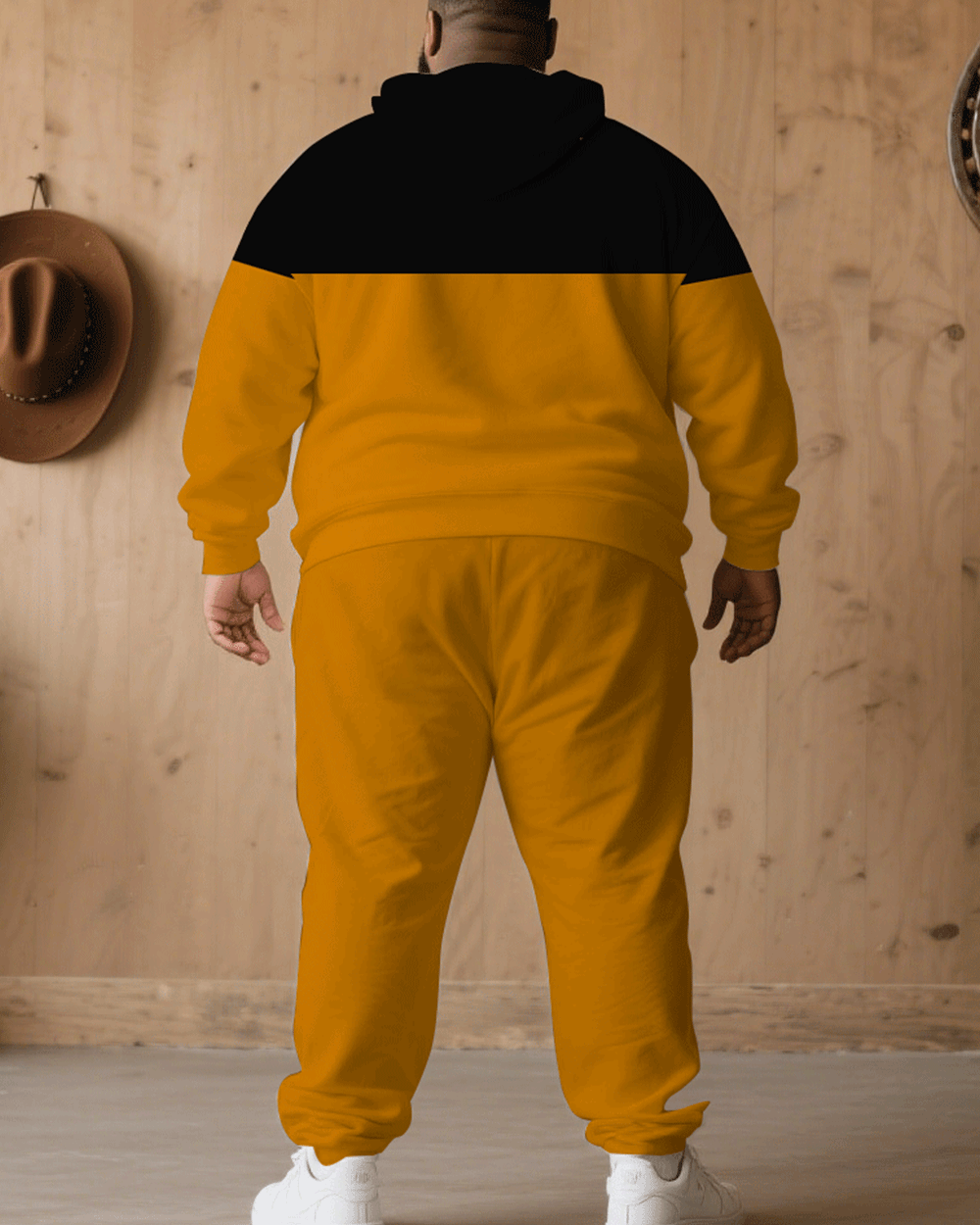 Big & Tall Men Autumn/Winter Casual Black & Orange Slogan Printed Hoodie Suit