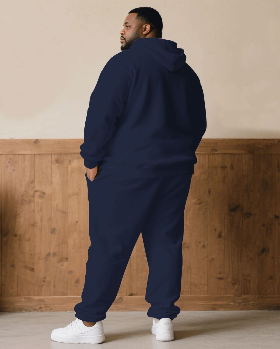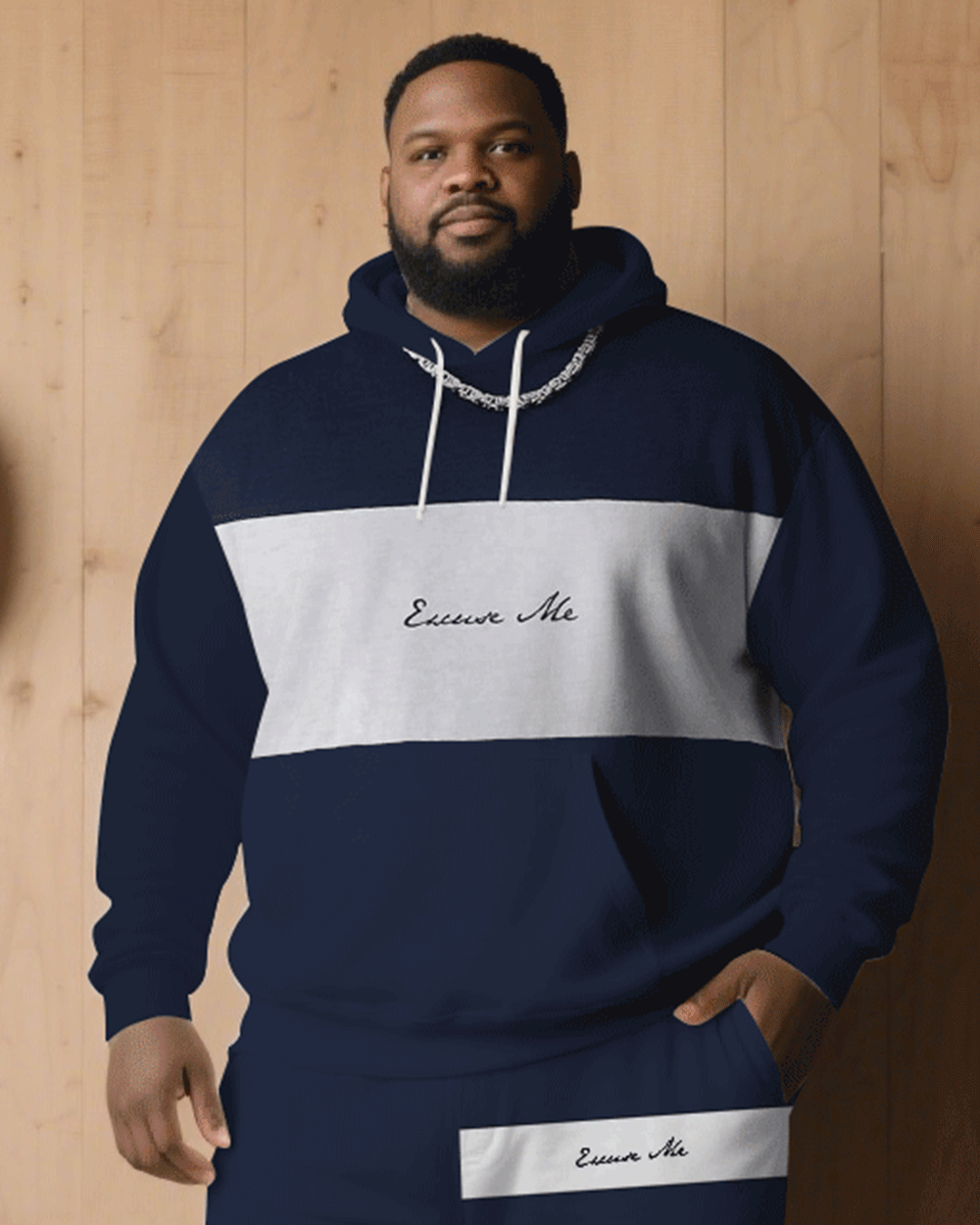 Big & Tall Men Fall/Winter All-match Royal Blue & White Slogan Printed Hoodie Suit