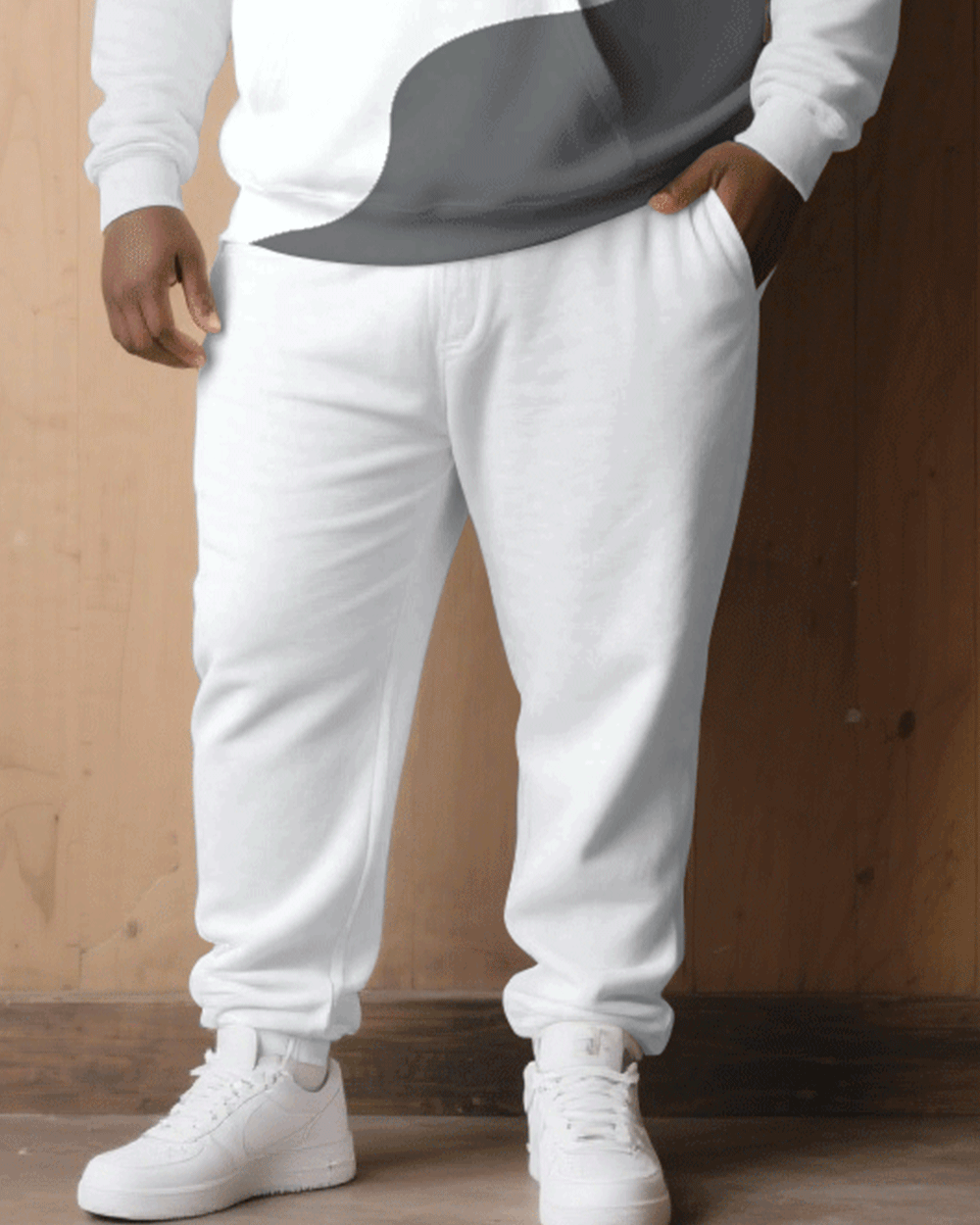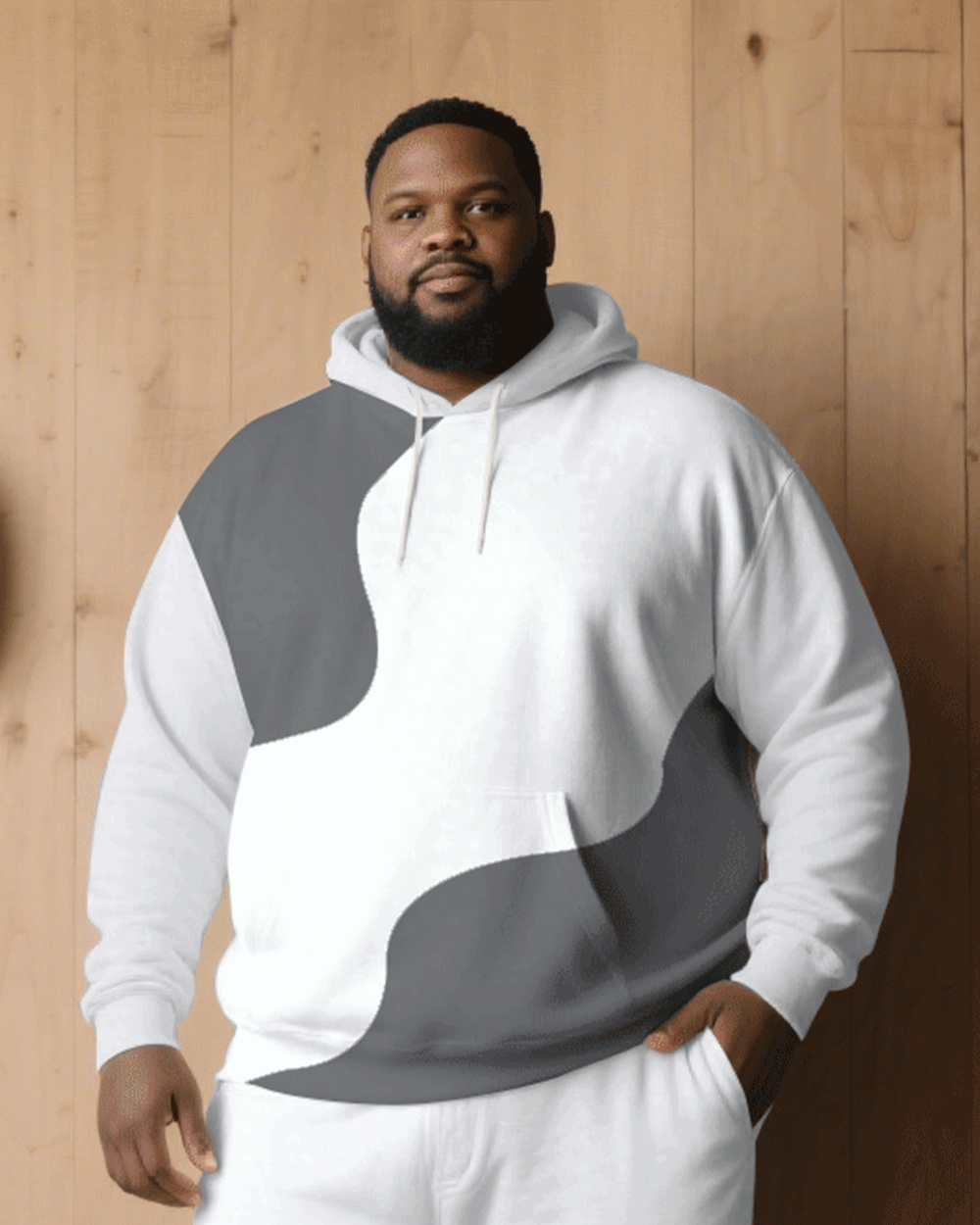 Big & Tall Men Fall/Winter Casual White & Grey Alien Patchwork Printed Hoodie Suit