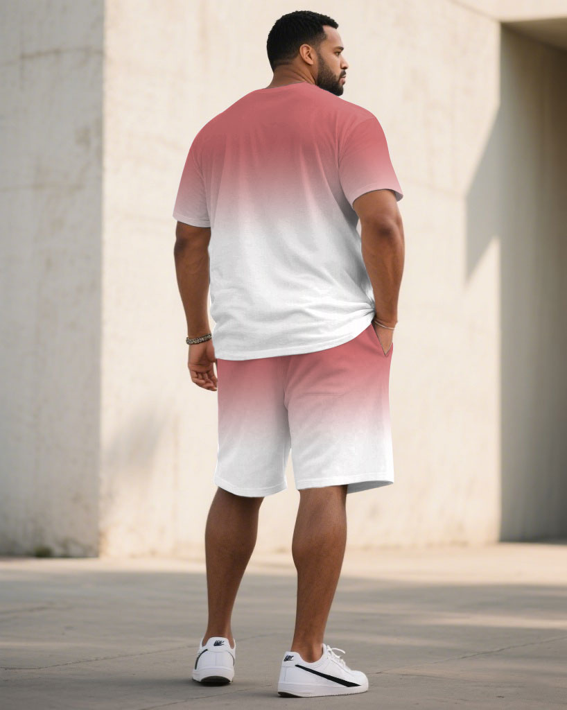 Big & Tall Men Pink & White Gradient Contrast Handwritten Respect Slogan Printed Crewneck Short Sleeve T-Shirt Shorts Suit