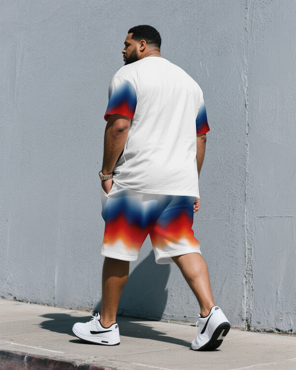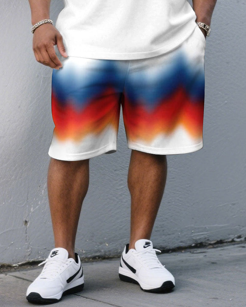 Big & Tall Men Summer White Rainbow Pattern Printed Round Neck Short Sleeve T-Shirt Shorts Suit
