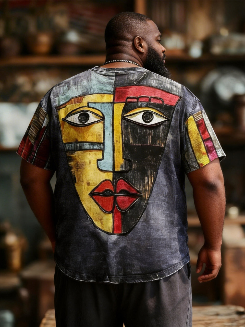 Big & Tall Men's Abstract Face Art Print Round Neck Short Sleeve T-Shirt