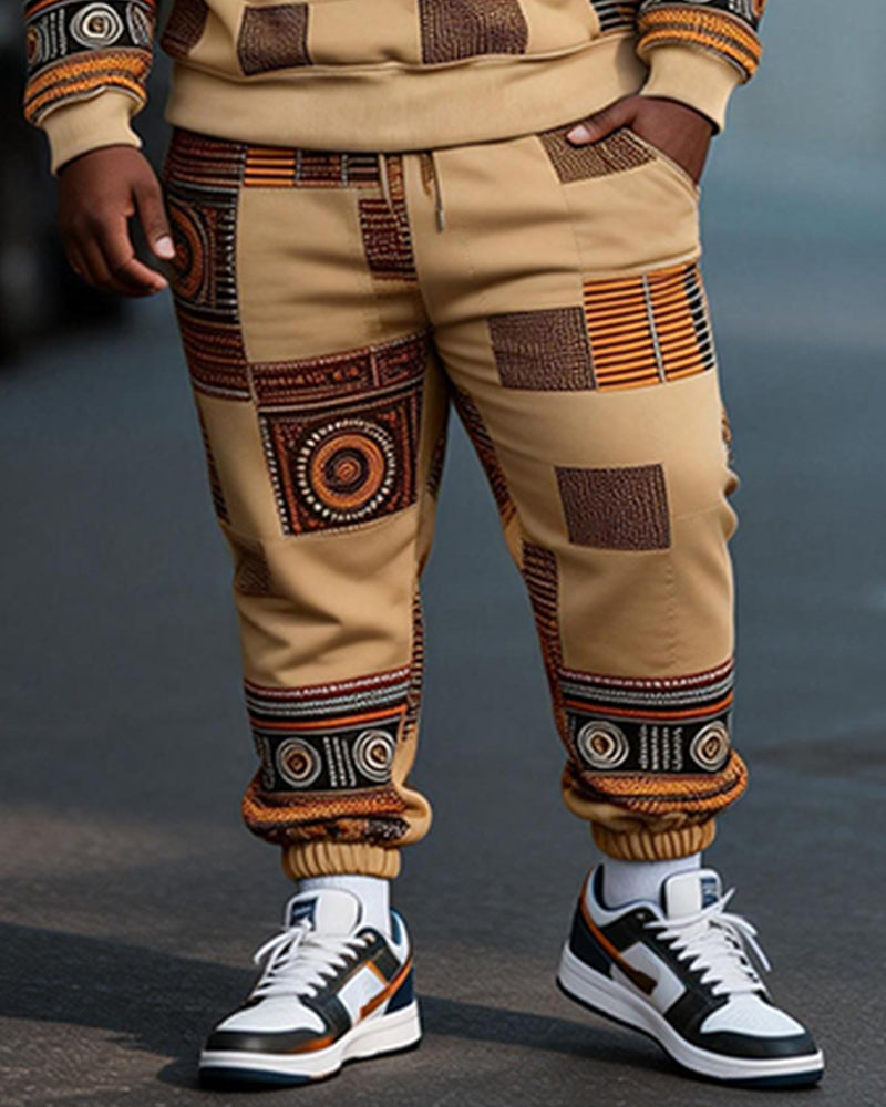Big & Tall Men's African Batik Black Print Crewneck Sweat Set