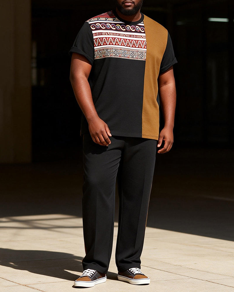 Big & Tall Men's African Totem Patchwork Printed T-Shirt Pants Set