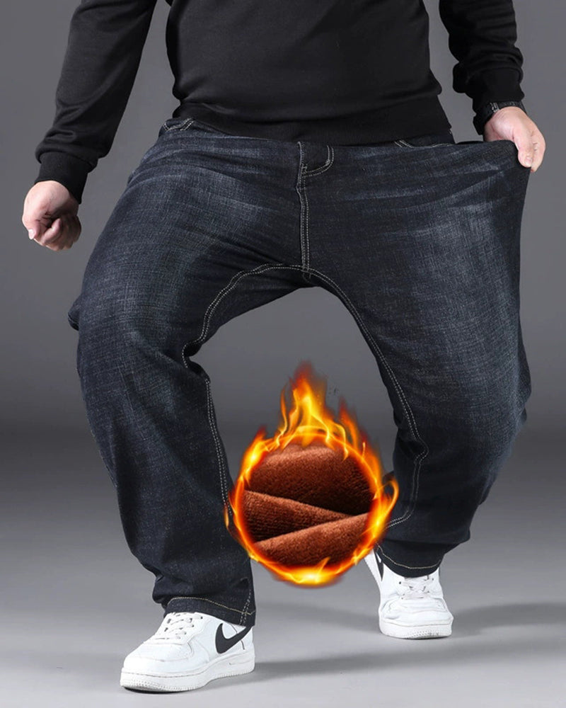 Big & Tall Men's Autumn And Winter Thick Loose Stretch Straight Jeans 28-50