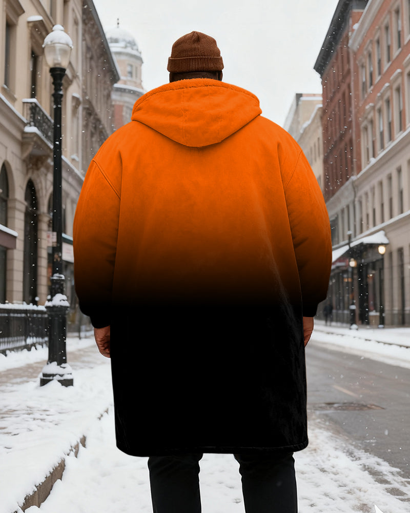 Big & Tall Men's "BAD BOY" Orange Black Gradient Printed Velvet Padded Long Hooded Coat