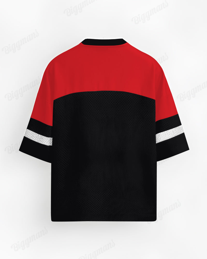 Big & Tall Men's Black And Red Colorblock Independence Day Statue Of Liberty Print Tennis Jersey
