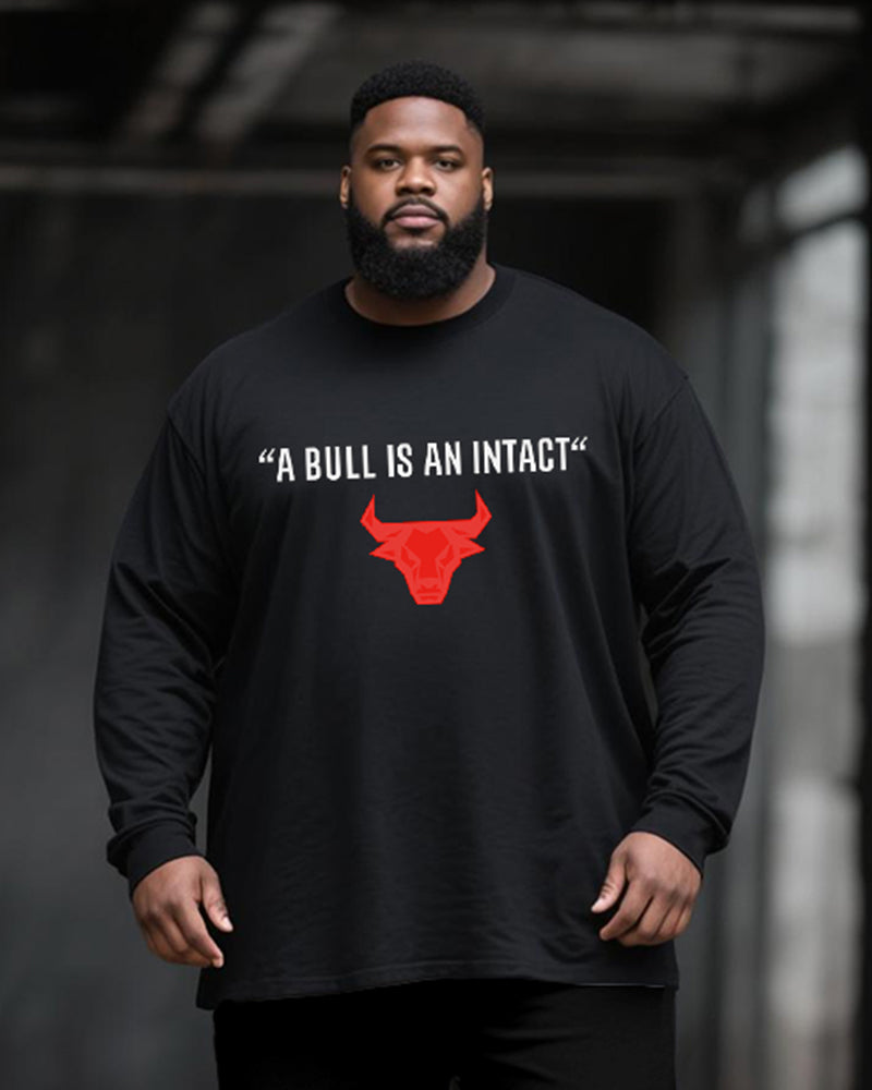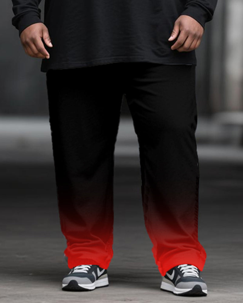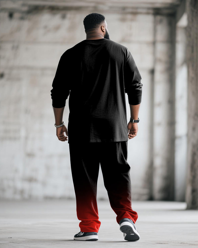 Big & Tall Men's Black And Red Gradient Letter Horn Printing Long Sleeve T-Shirt Pants Suit