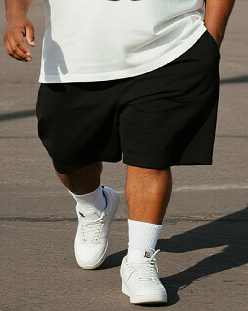 Big & Tall Men's Black And White God Is Good Deformed Letter Printed Round Neck Short Sleeve T-shirt Shorts Suit