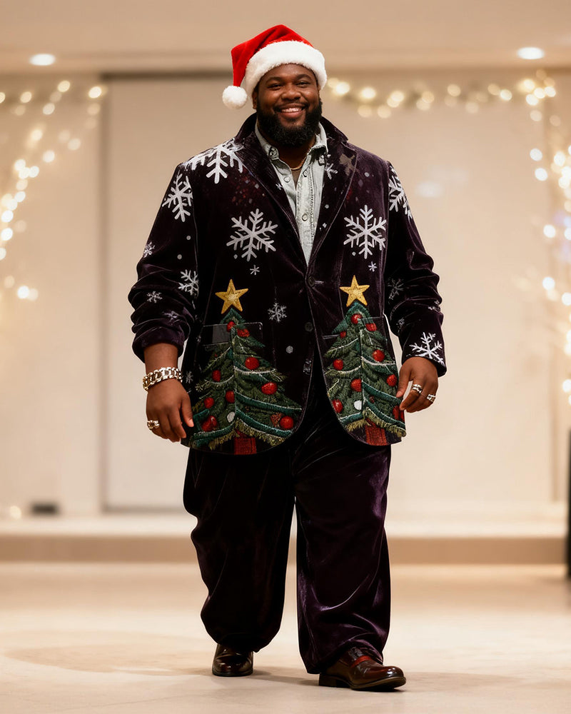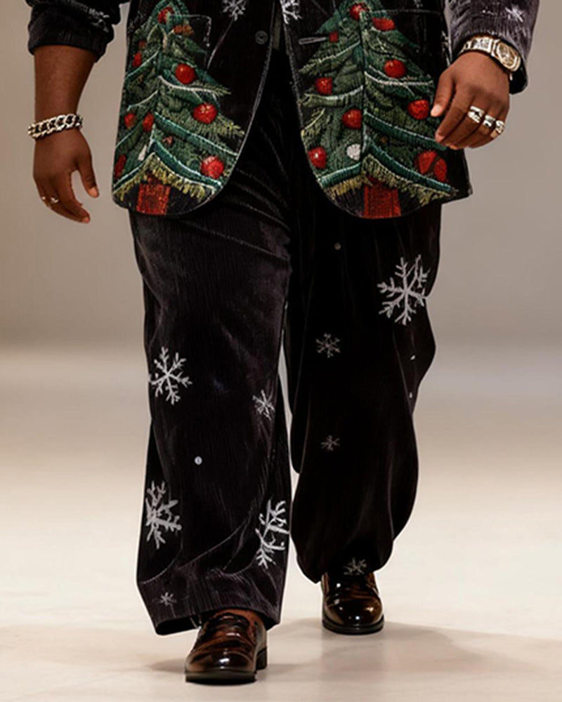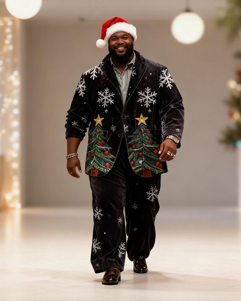 Big & Tall Men's Black Christmas Tree Snowflake Print Suit