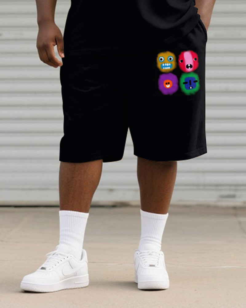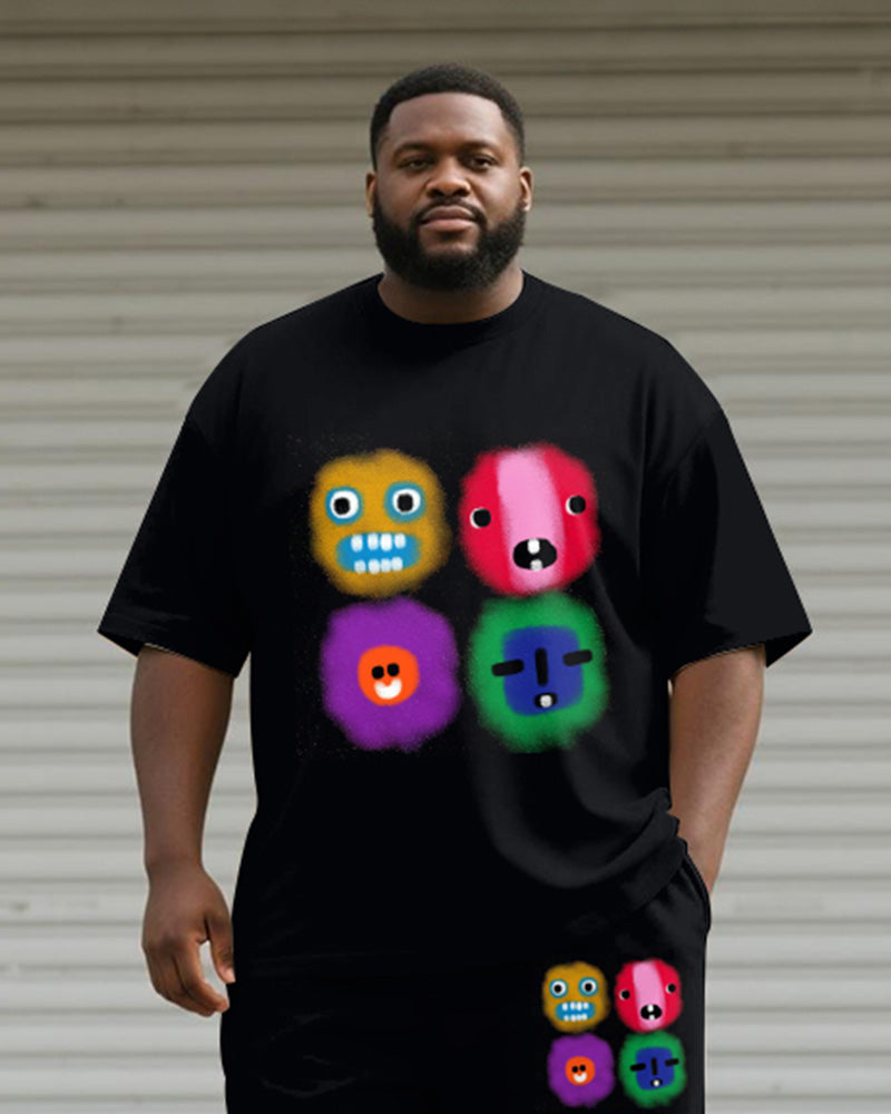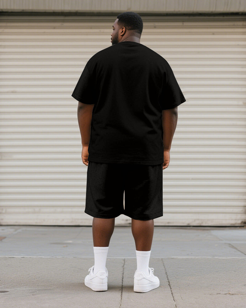 Big & Tall Men's Black Expression Graffiti Print Round Neck Short Sleeve T-Shirt Shorts Suit