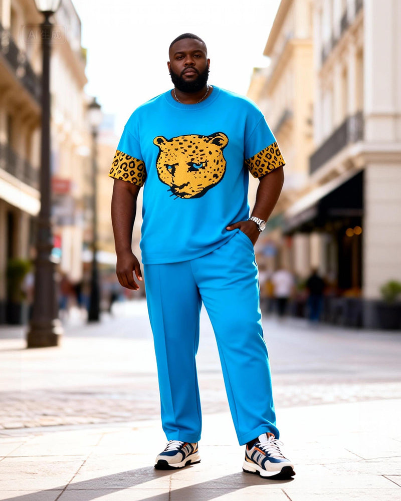 Big & Tall Men's Blue Leopard Print T-Shirt Pants Set