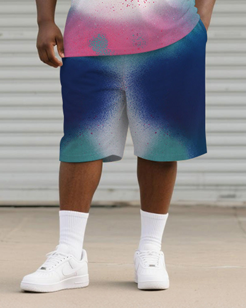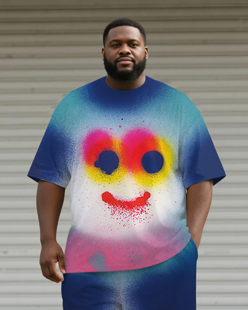 Big & Tall Men's Blue Simi Graffiti Print Round Neck Short Sleeve T-Shirt Shorts Suit