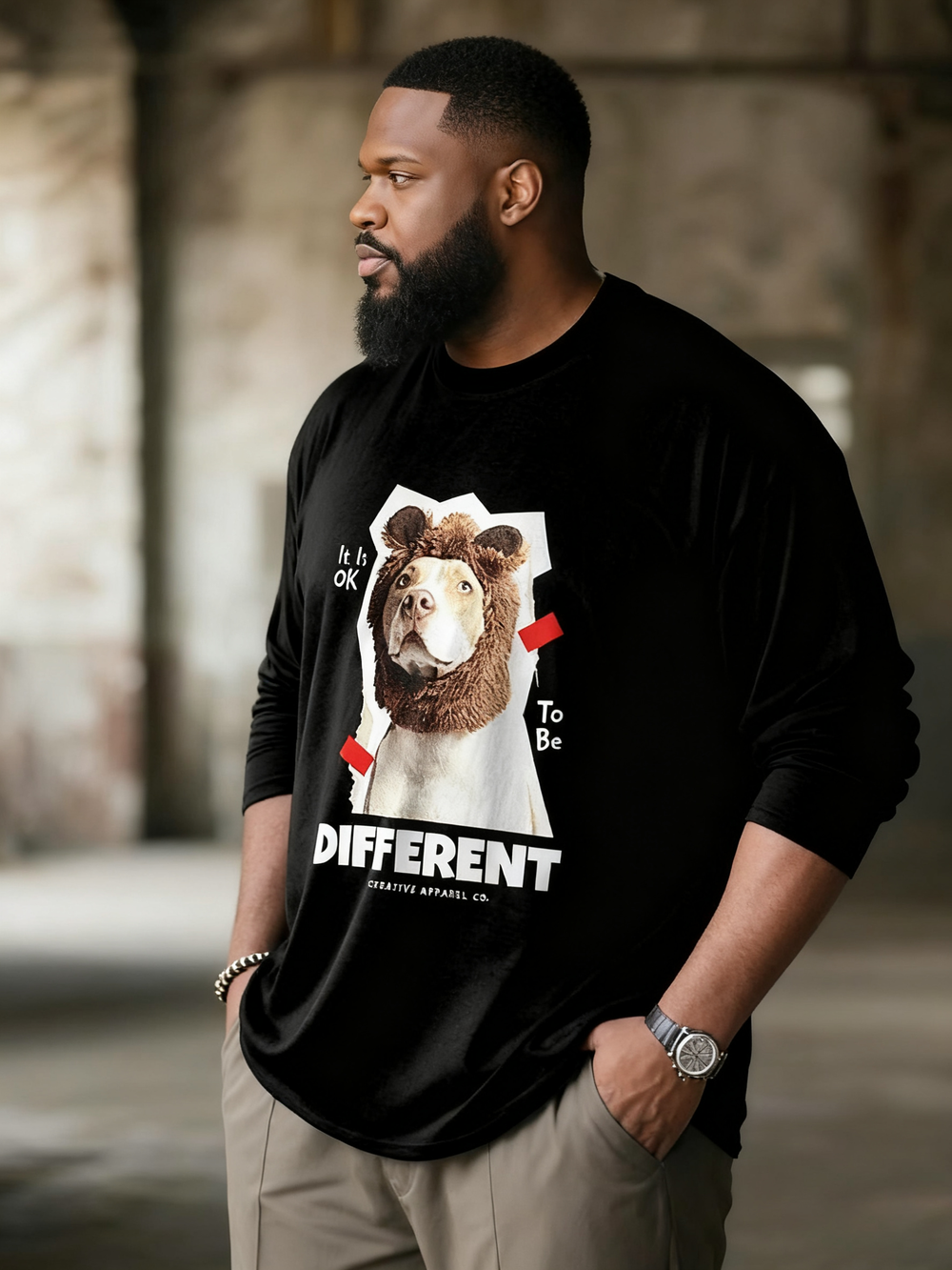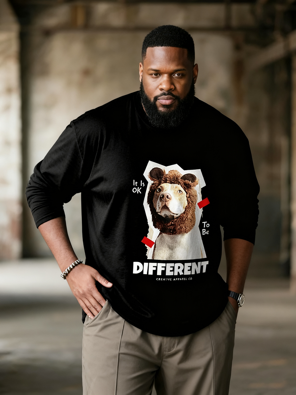 Big & Tall Men's Brown Bear Head Dog Graffiti Print Long Sleeve T-Shirt