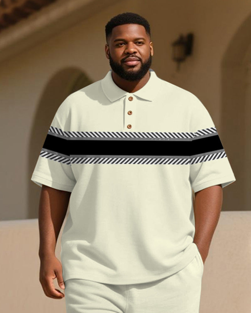 Big & Tall Men's Business Apricot Geometric Stripe Print Short Sleeve Polo Shirt Shorts Suit