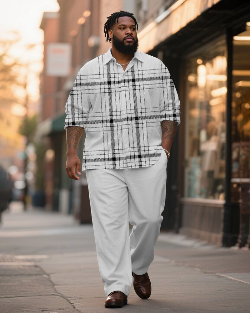 Big & Tall Men's Business Black And White Check Printed Long Sleeve Shirt Trousers Suit