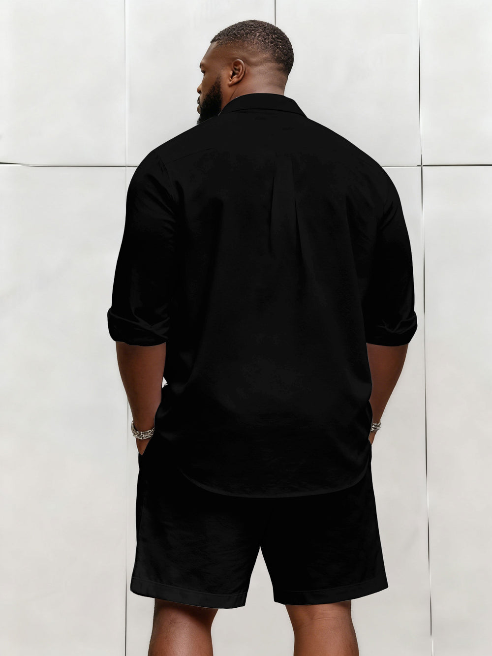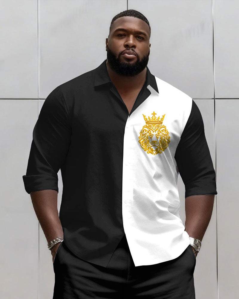 Big & Tall Men's Business Black & White Chest KING Print Long Sleeve Shirt Shorts Set