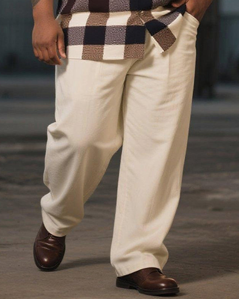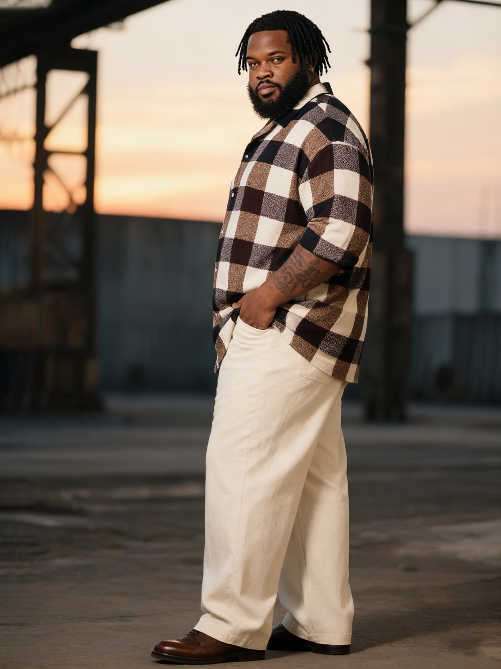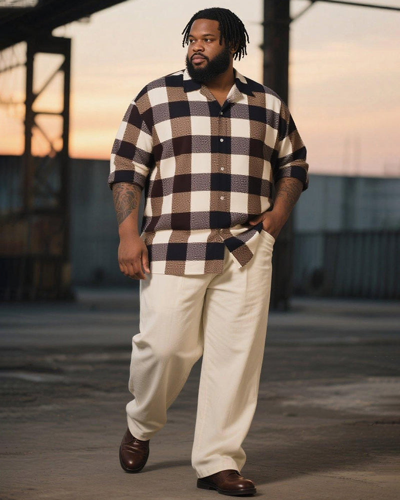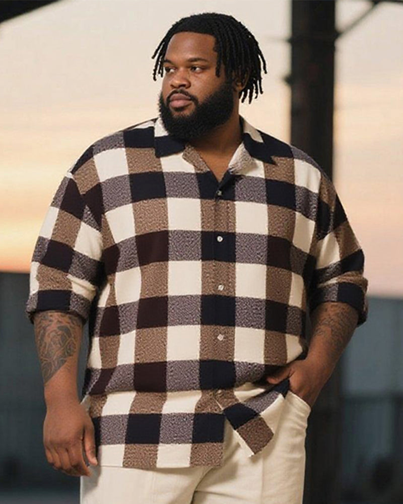Big & Tall Men's Business Brown Plaid Print Long Sleeve Shirt Trousers Suit