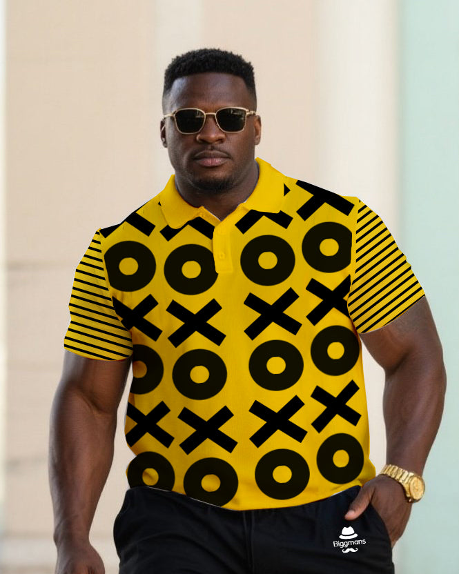 Big & Tall Men's Business Commuter Daily Leisure Sports Original OXOX Stripe Design-Polo Shirt Short Sleeve Polo Shirt Shorts Suit