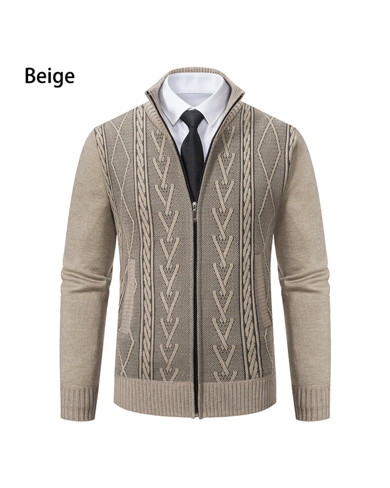 Big & Tall Men's Business Diamond Jacquard Thickened Vertical Neck Sweater Cardigan M-3XL