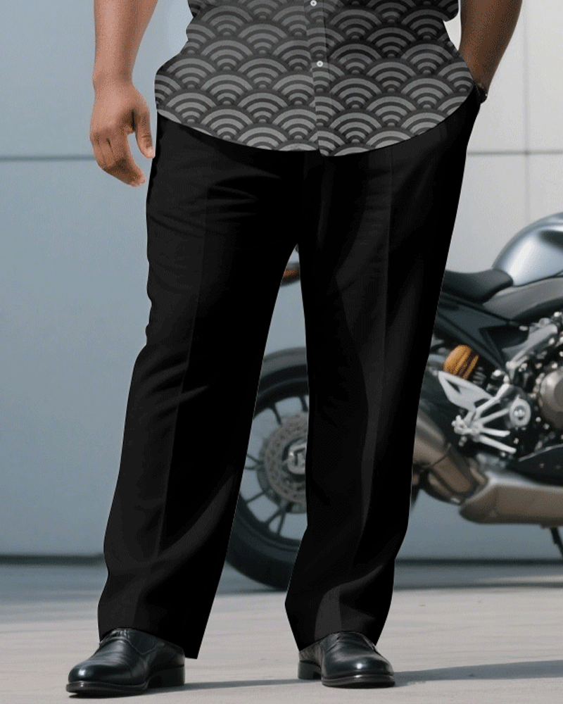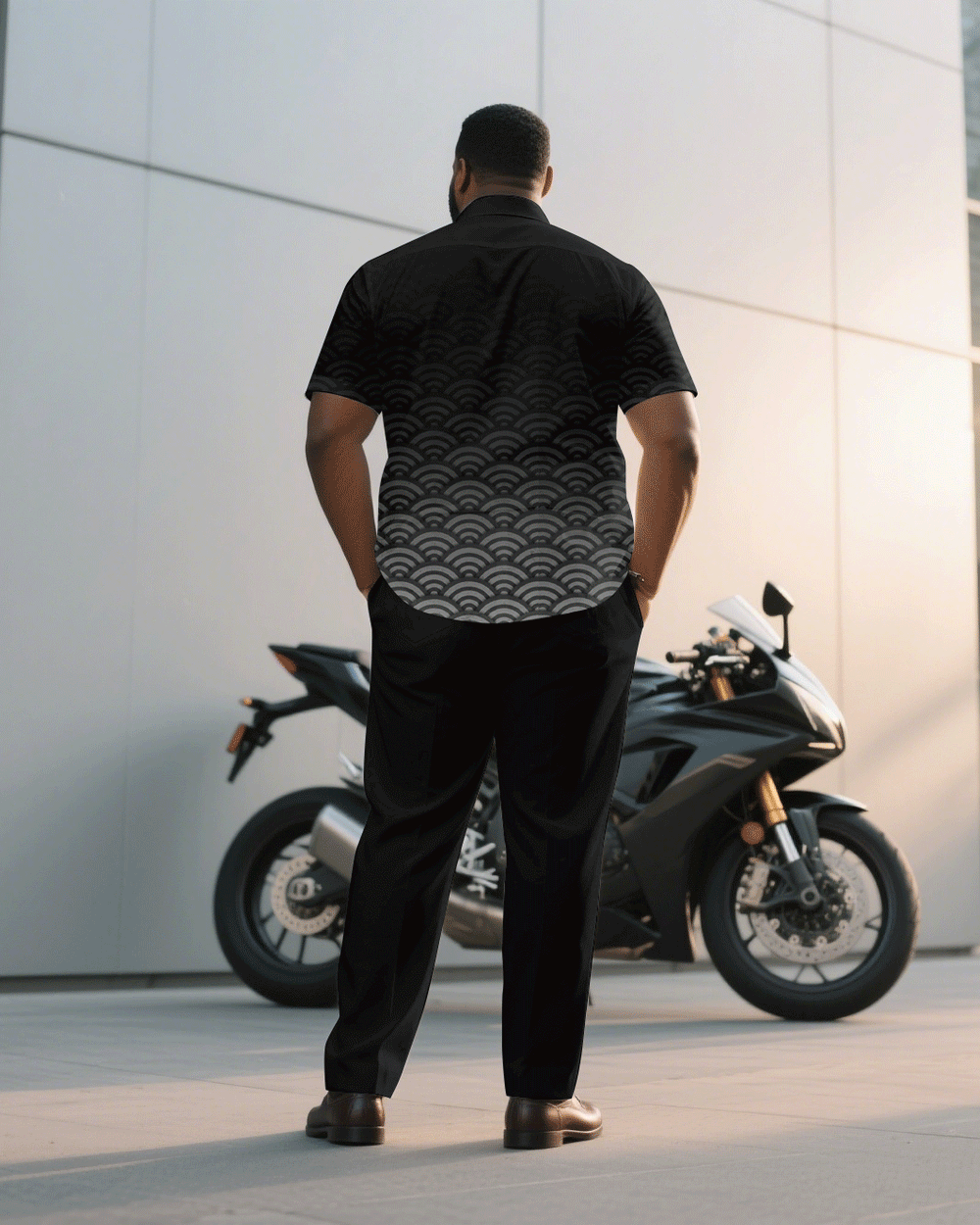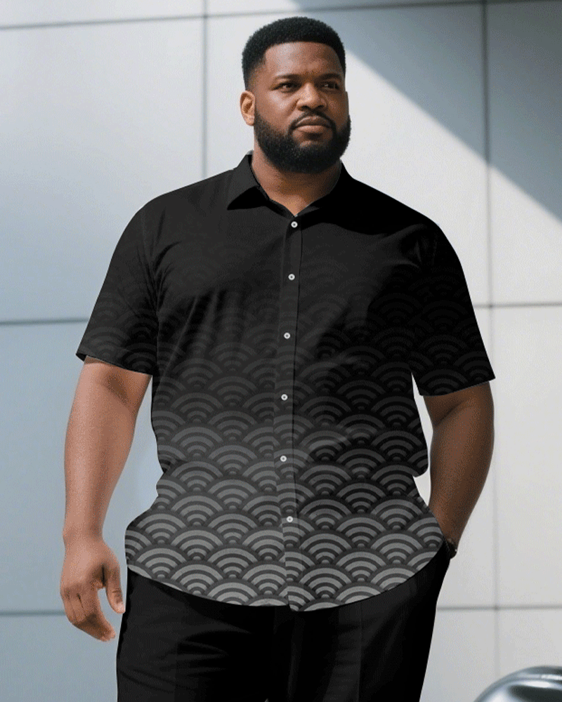 Big & Tall Men's Business Gradient Geometric Black Short Sleeve Shirt Trousers Suit