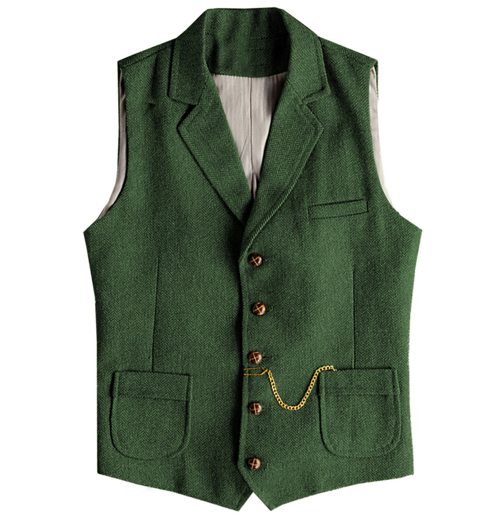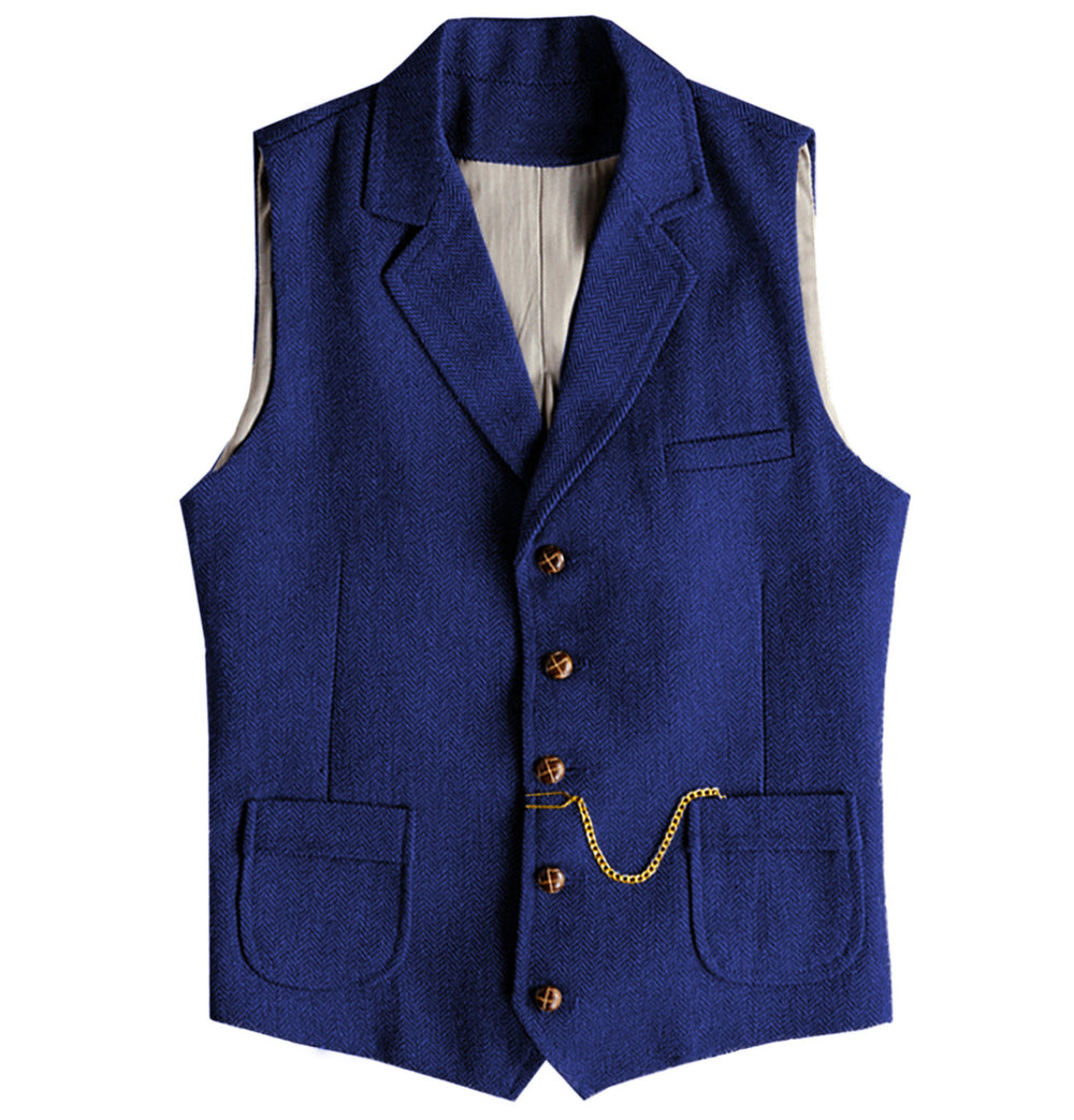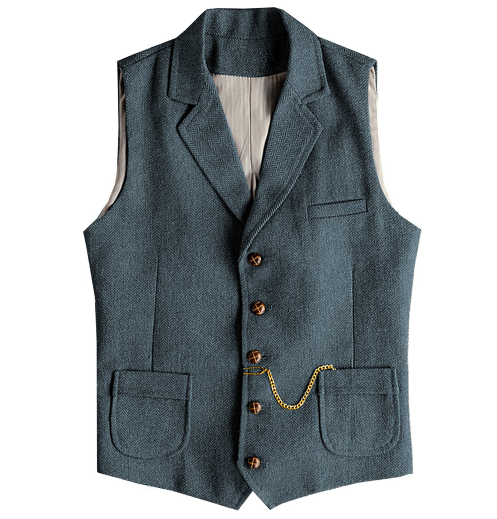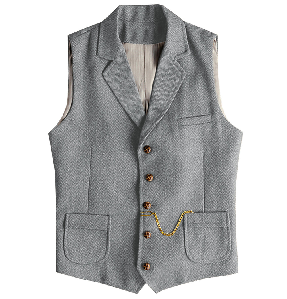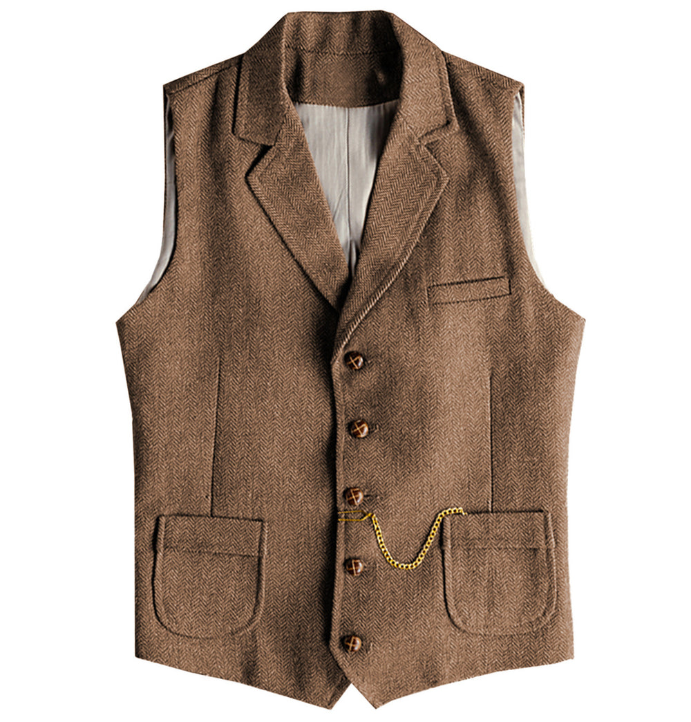 • Style: Business Herringbone Pattern Slim Fit Single-breasted Suit Vest