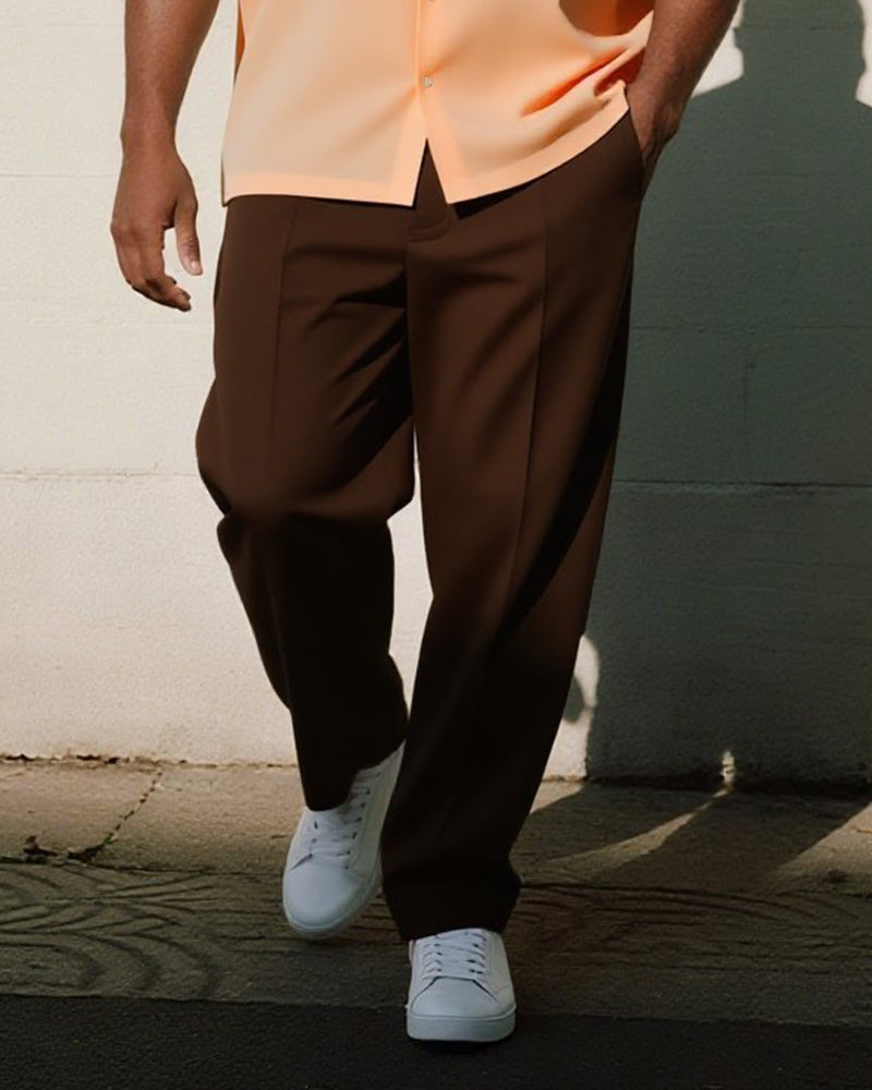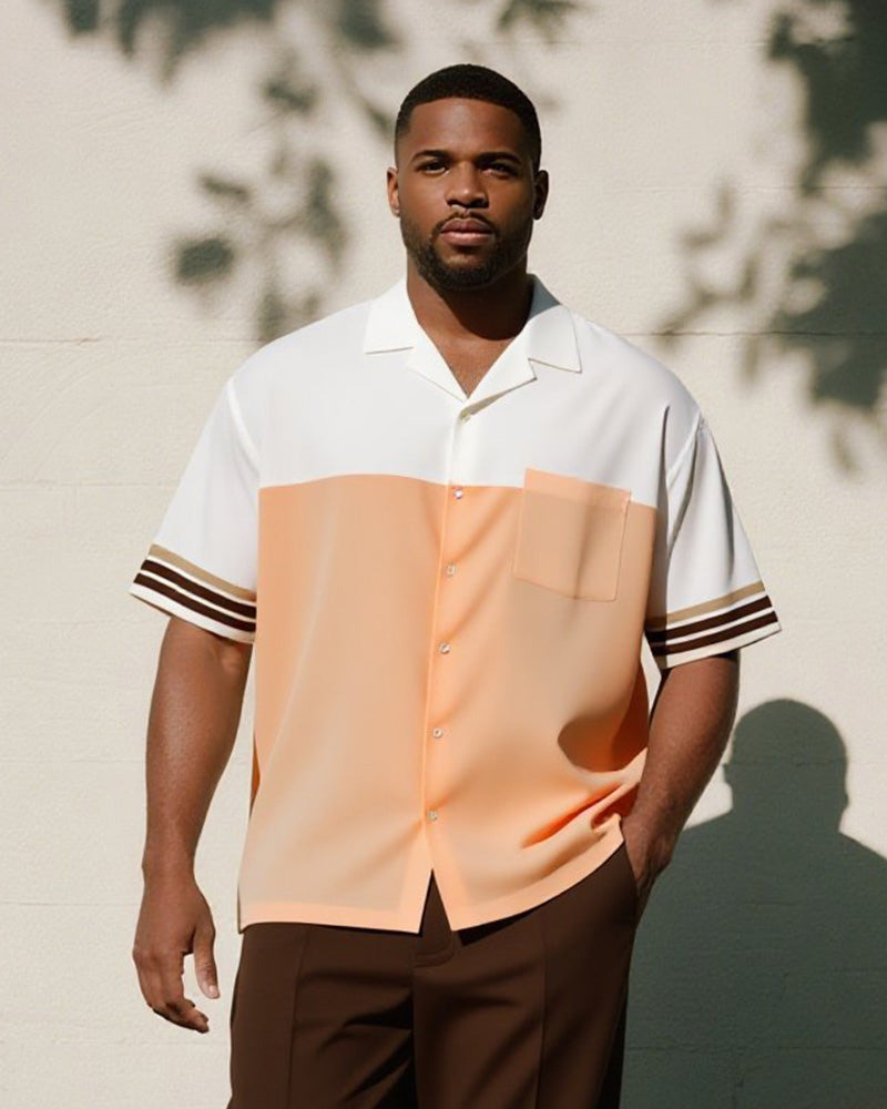 Big & Tall Men's Business Orange Stripe Colorblock Printed Pocket Short Sleeve Shirt Pants Suit
