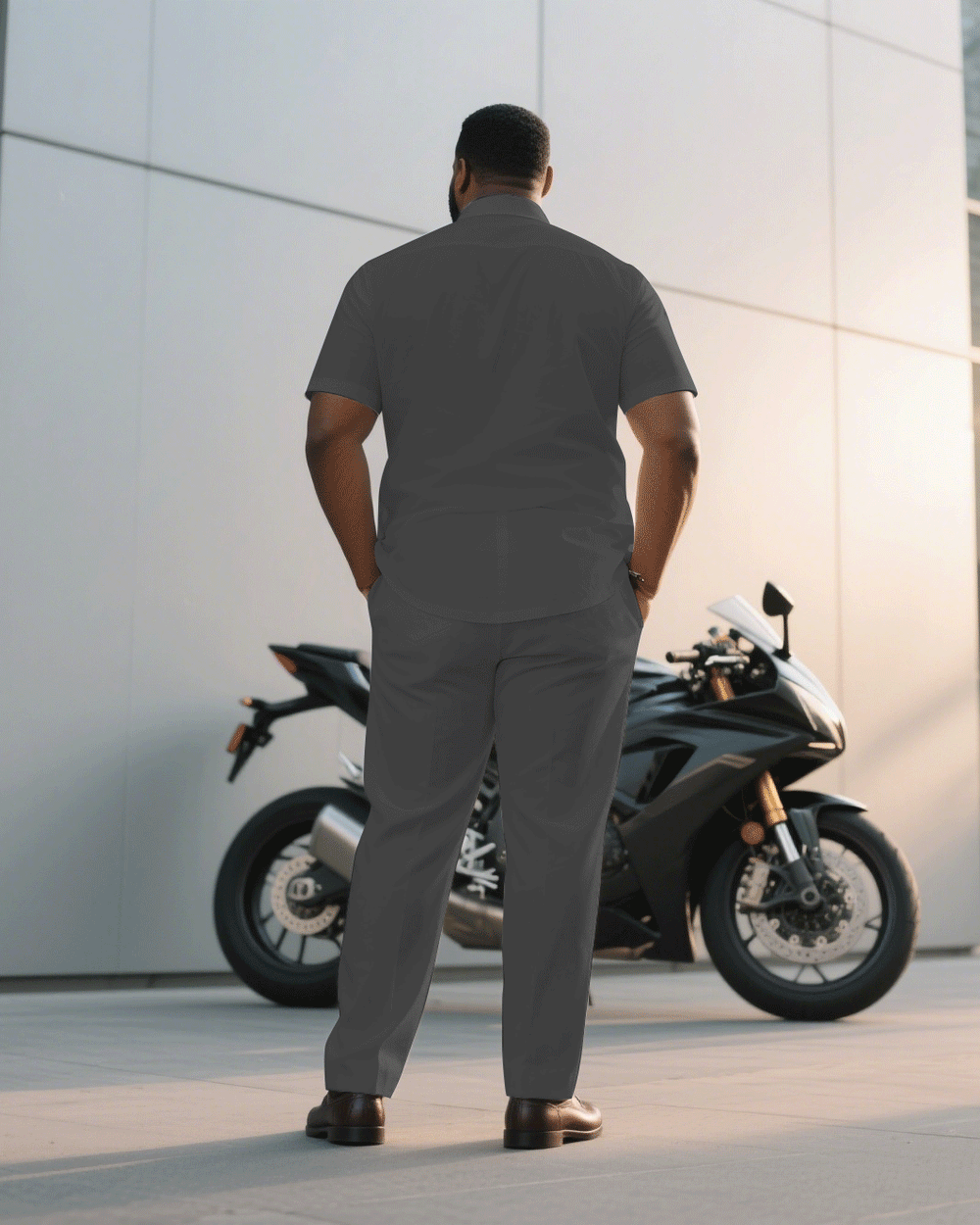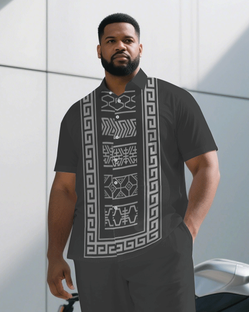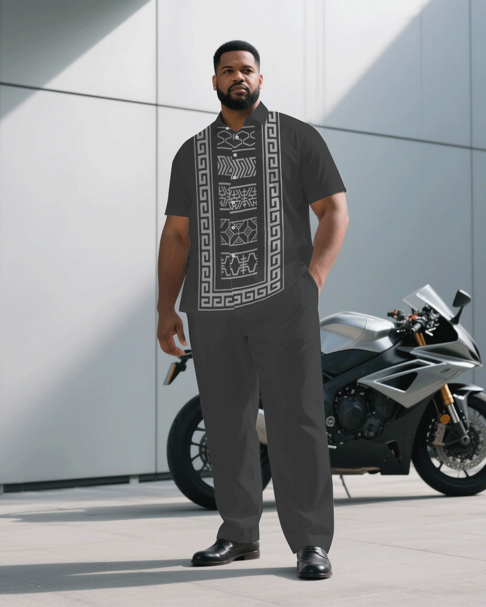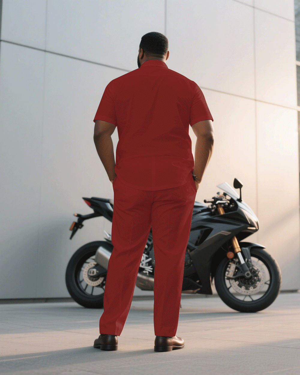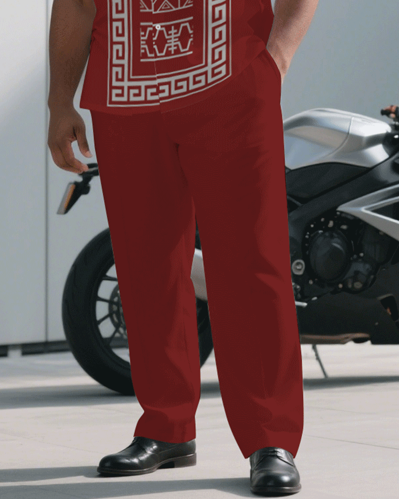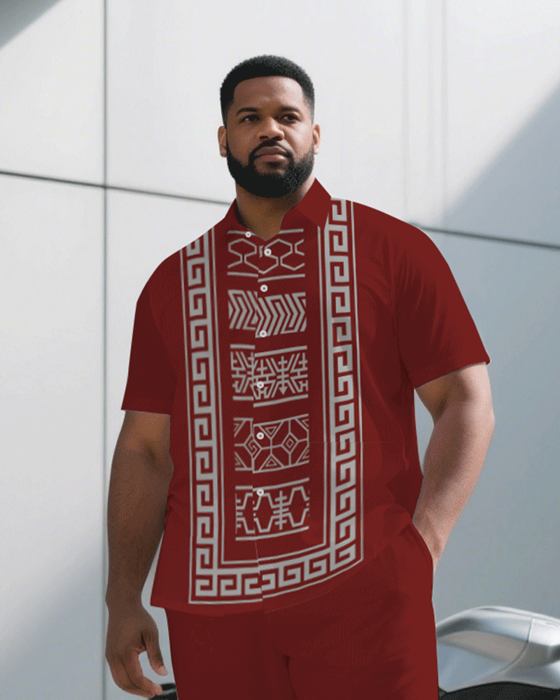 Big & Tall Men's Business Red & Grey Retro Pattern Symmetrical Printed Short Sleeve Shirt Pants Suit