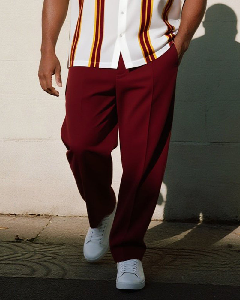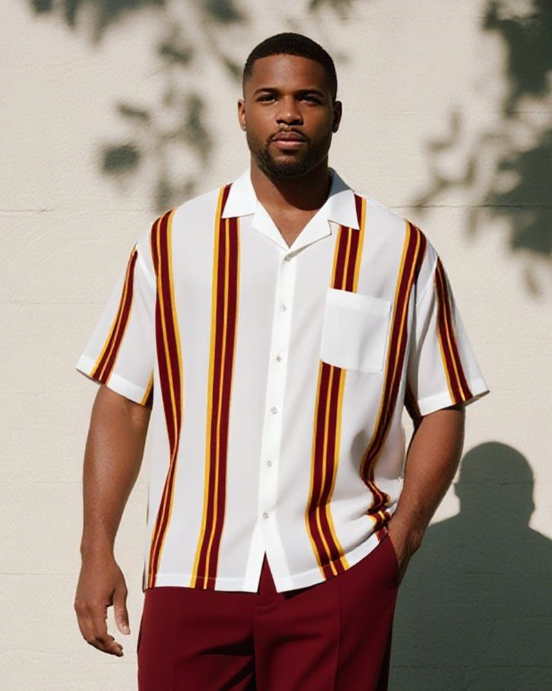 Big & Tall Men's Business Red Stripe Print Pocket Short Sleeve Shirt Trousers Suit