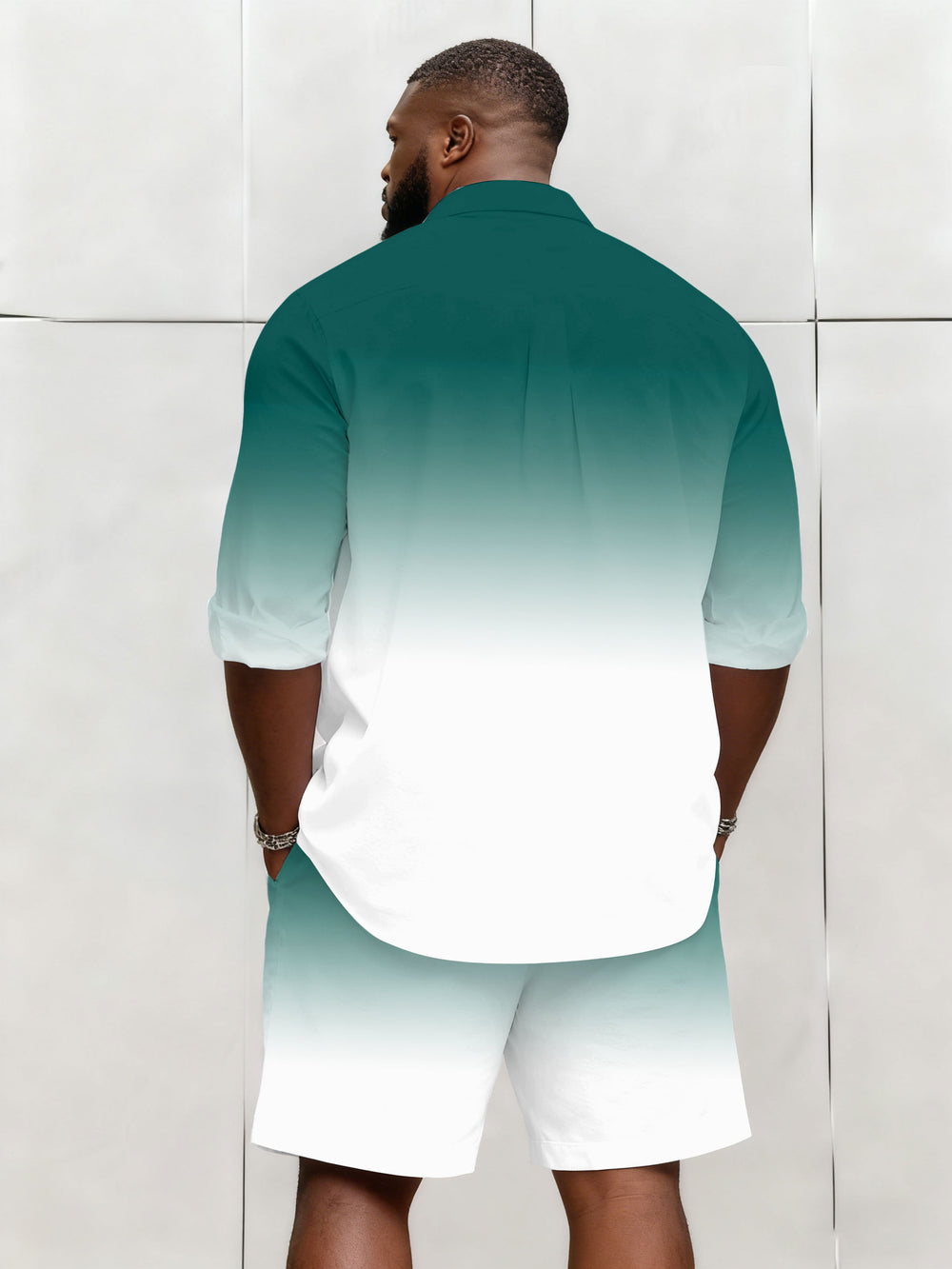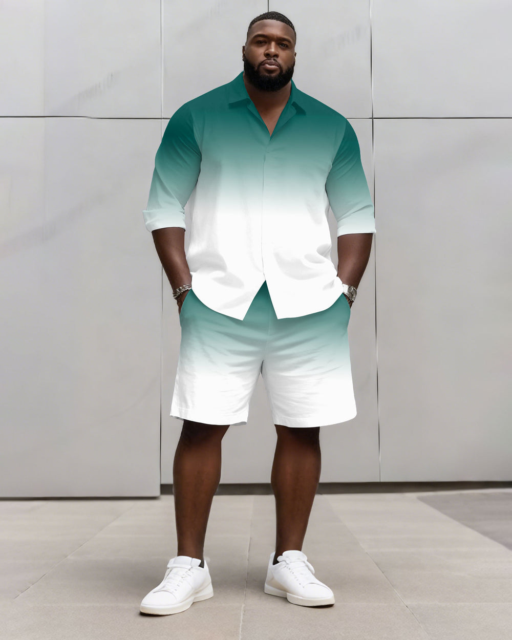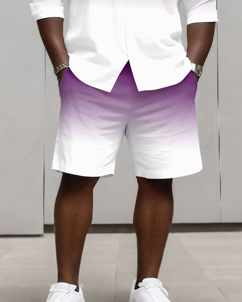 Big & Tall Men's Business Simple Gradient Contrast 2 Color Choice Long Sleeve Shirt Shorts Set