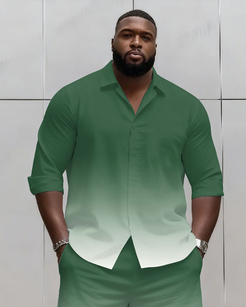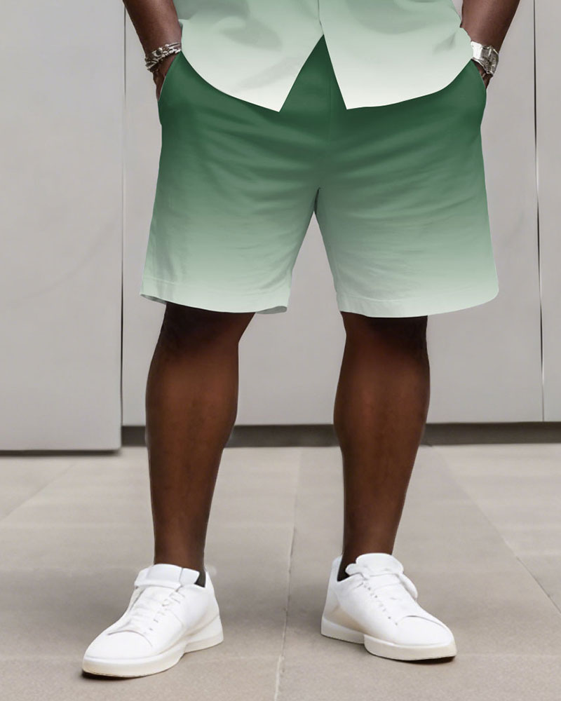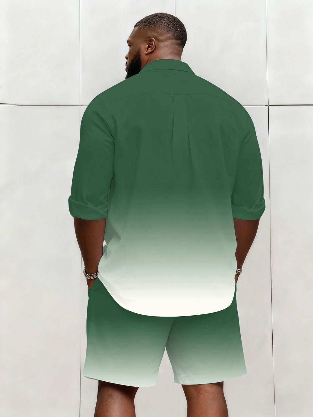 Big & Tall Men's Business Simple Green & White Gradient Long Sleeve Shirt And Shorts Set
