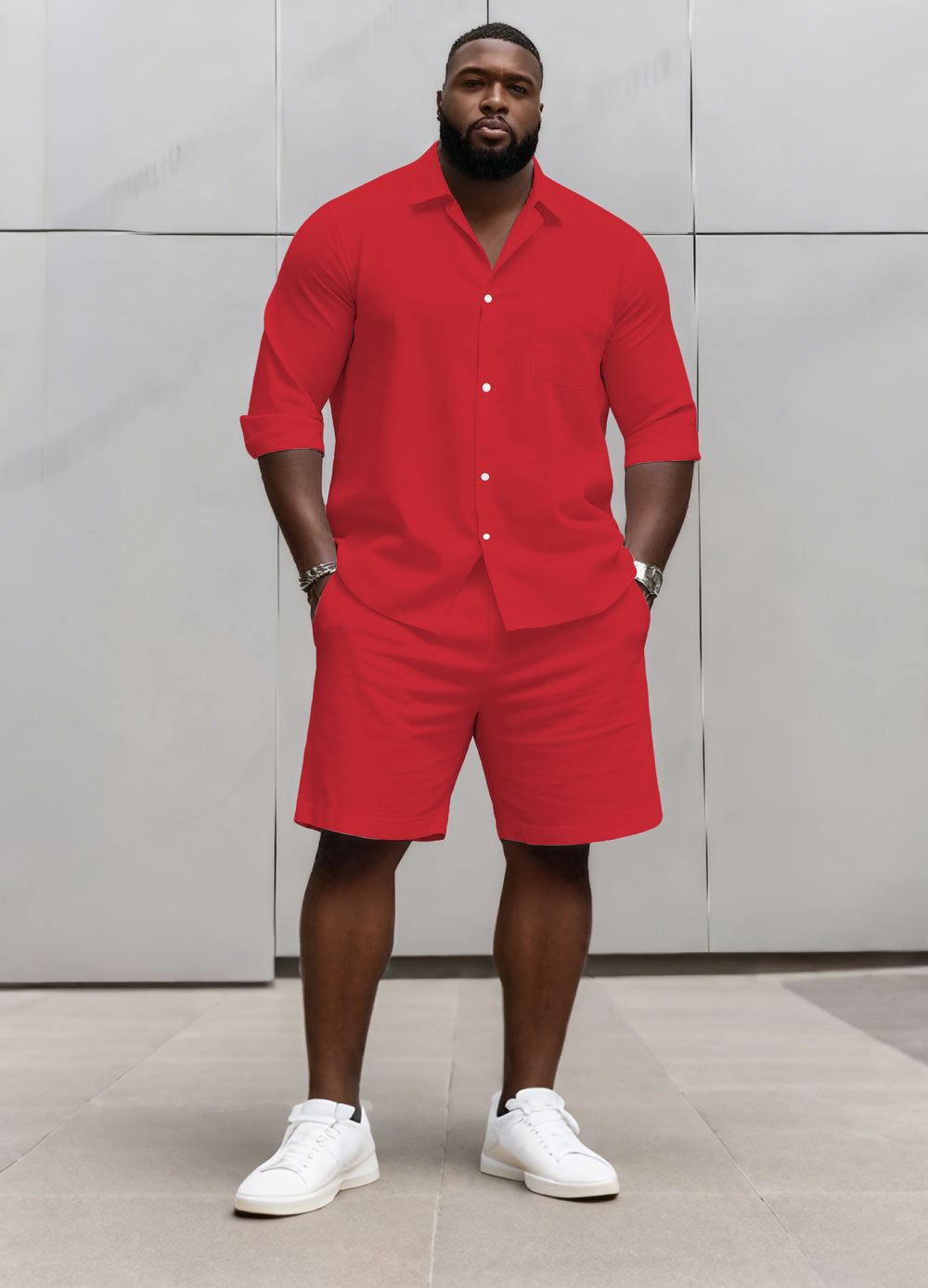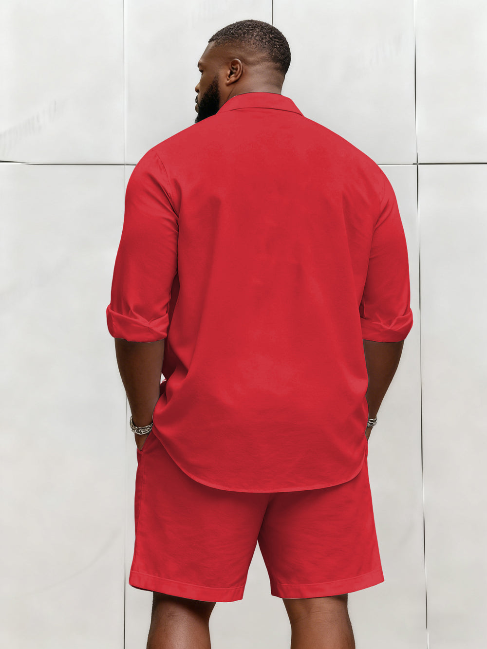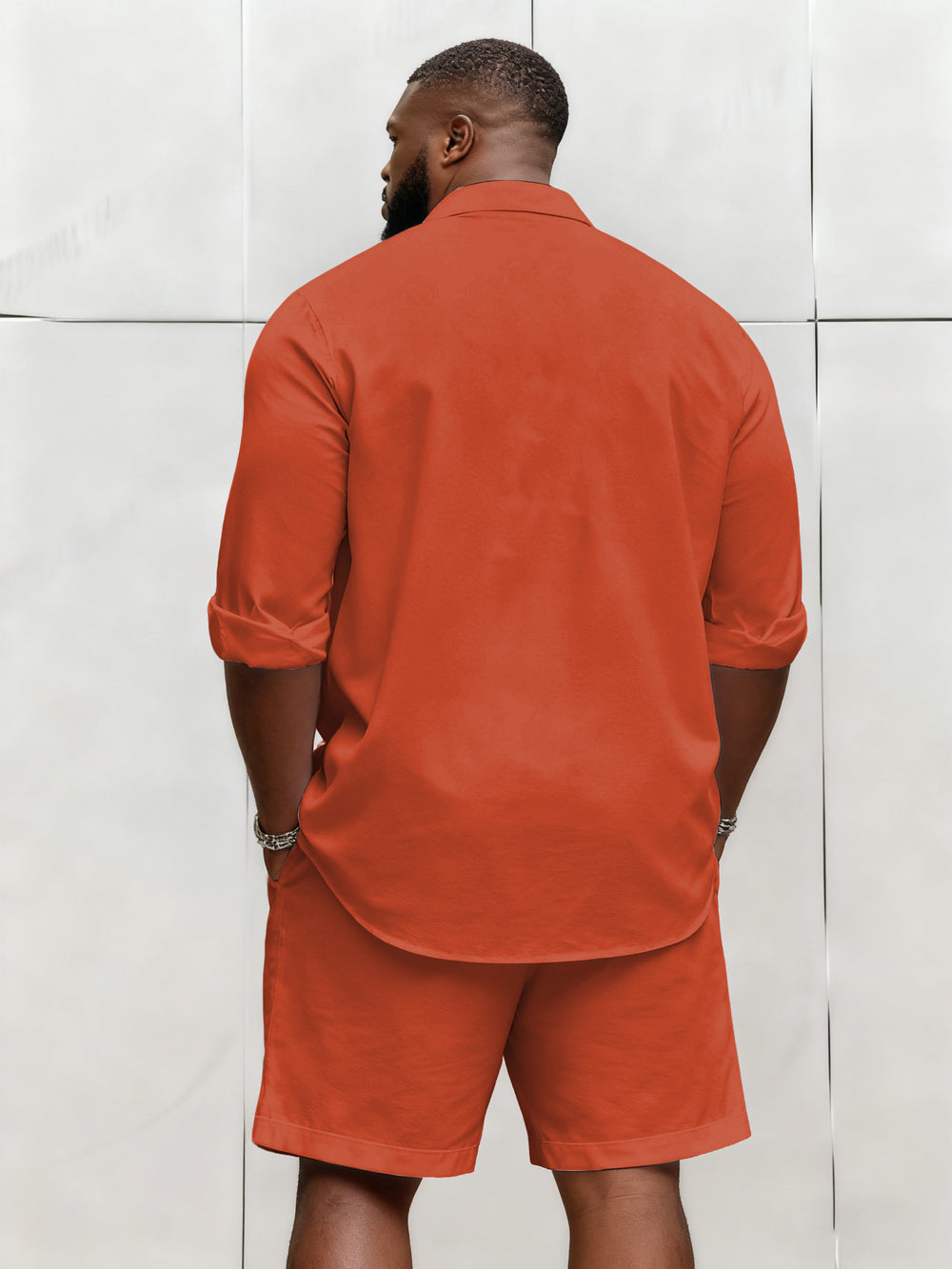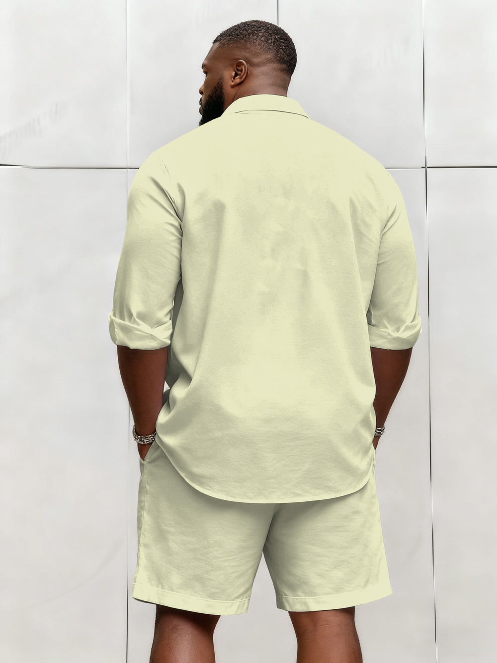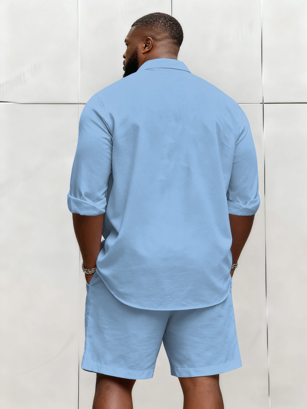 Big & Tall Men's Business Solid Color Long Sleeve Shirt Shorts Set
