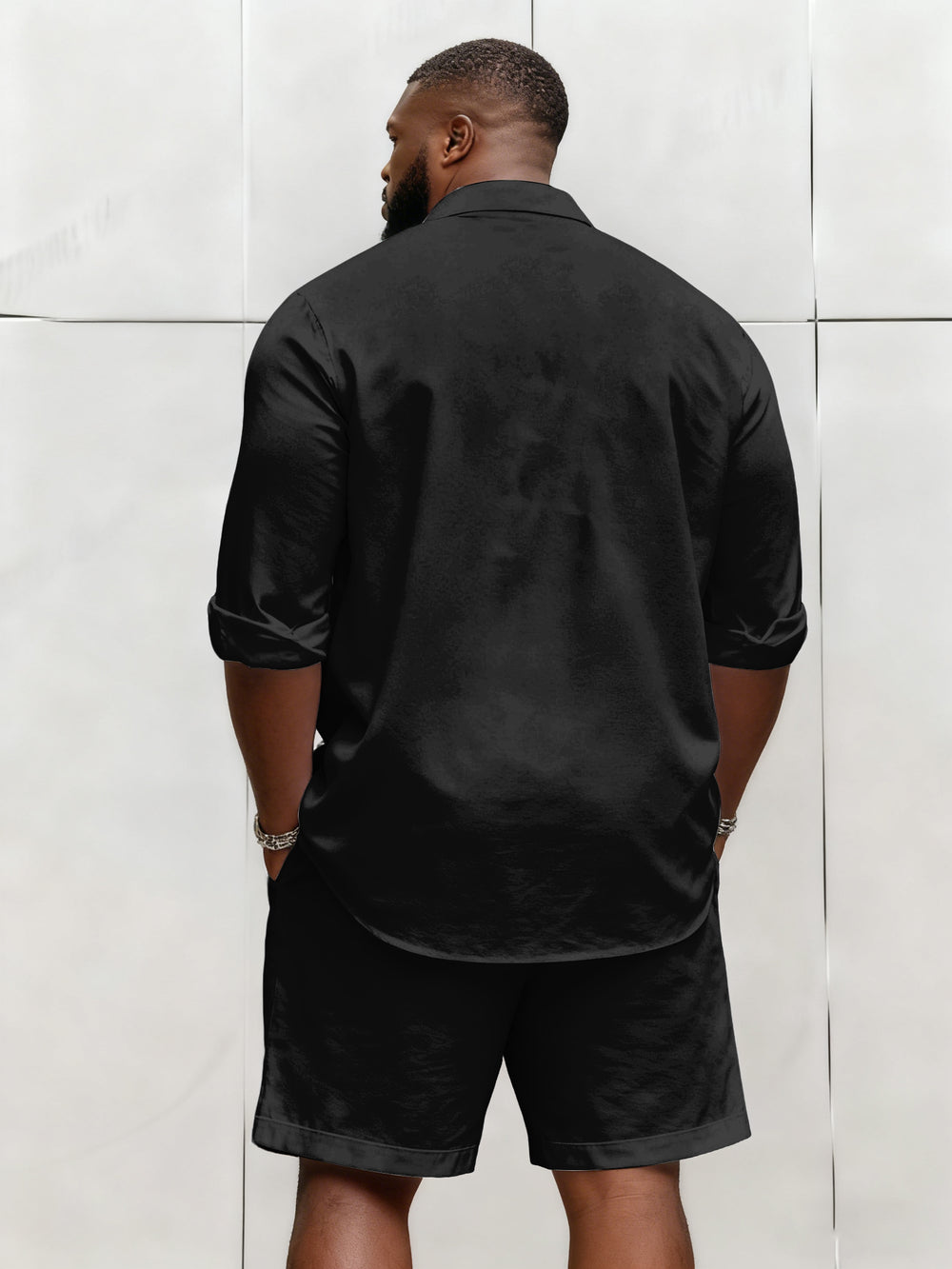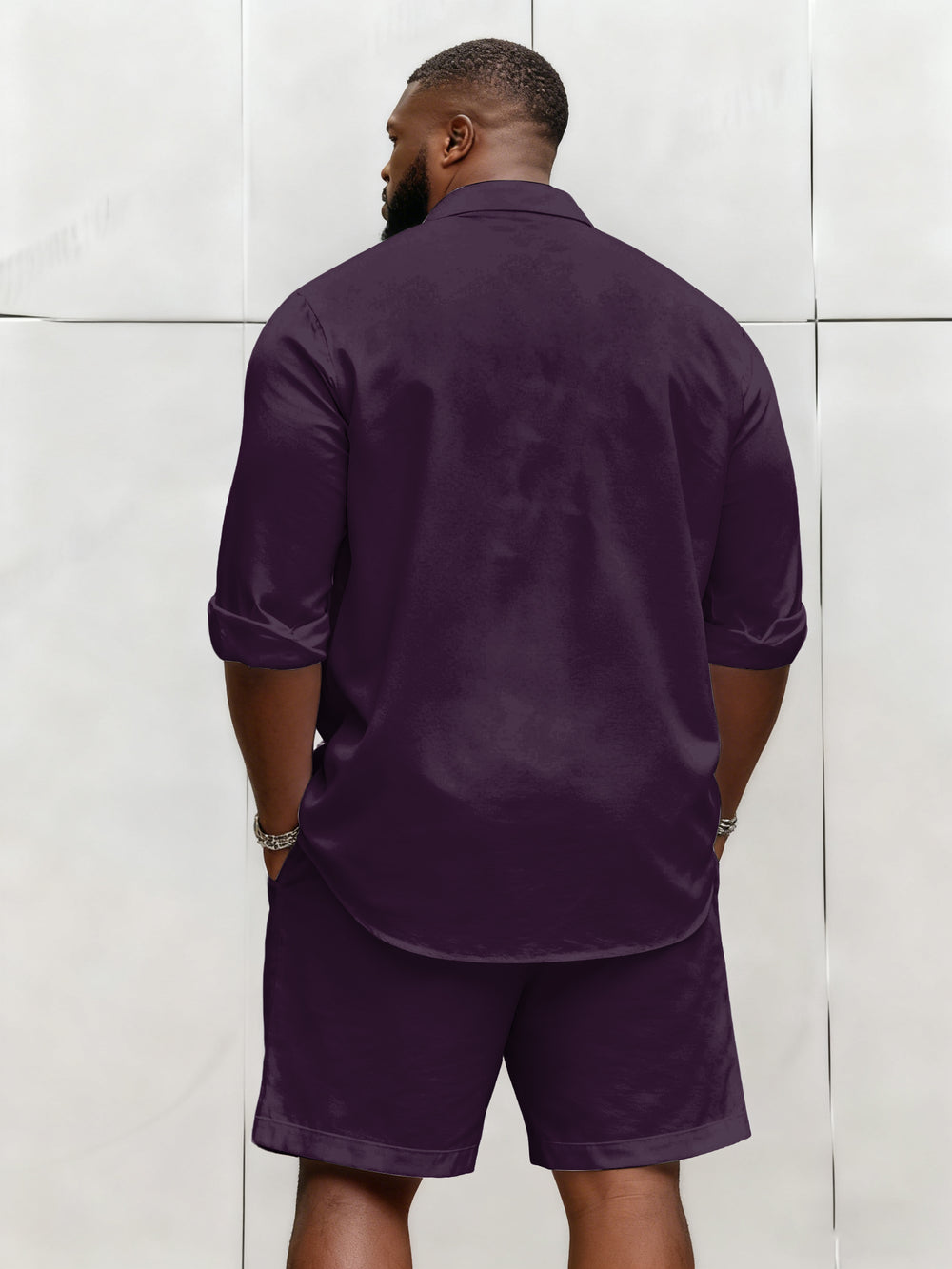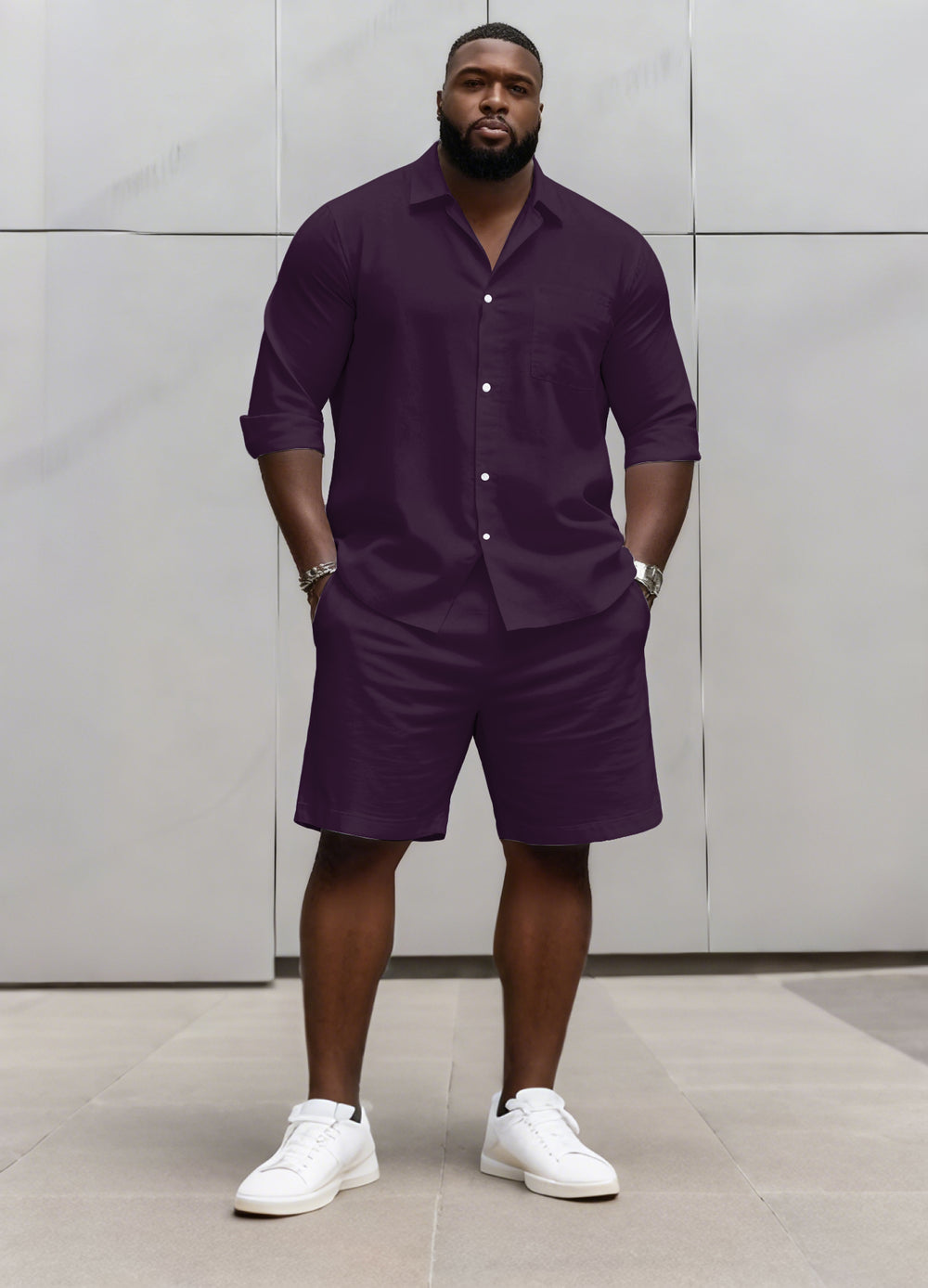 Big & Tall Men's Business Solid Color Long Sleeve Shirt Shorts Set