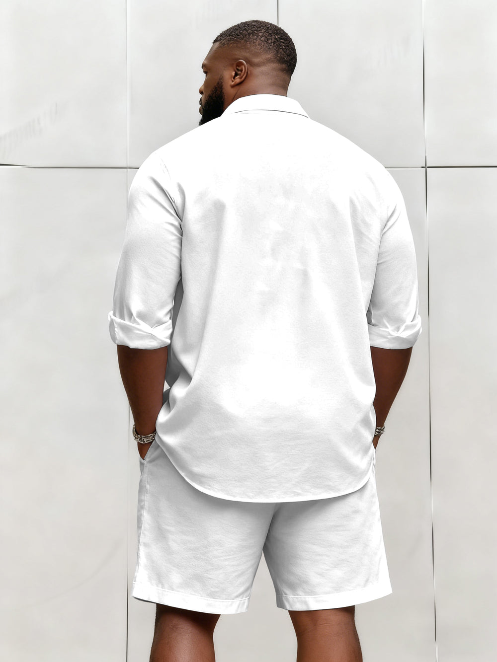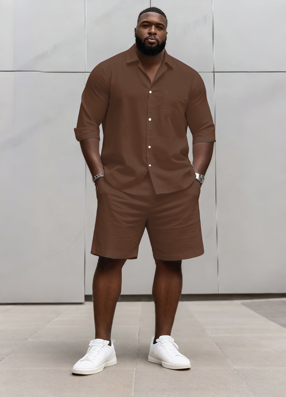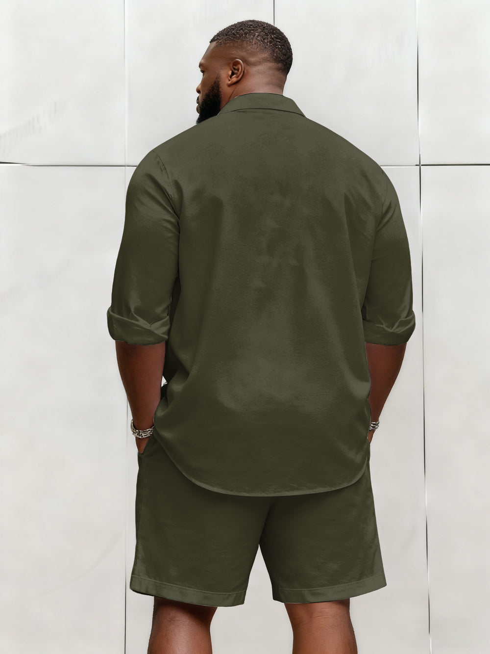 Big & Tall Men's Business Solid Color Long Sleeve Shirt Shorts Set