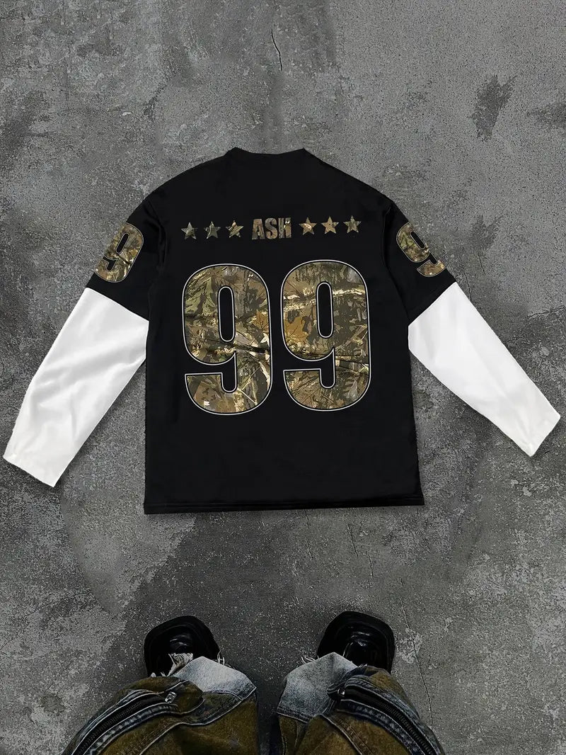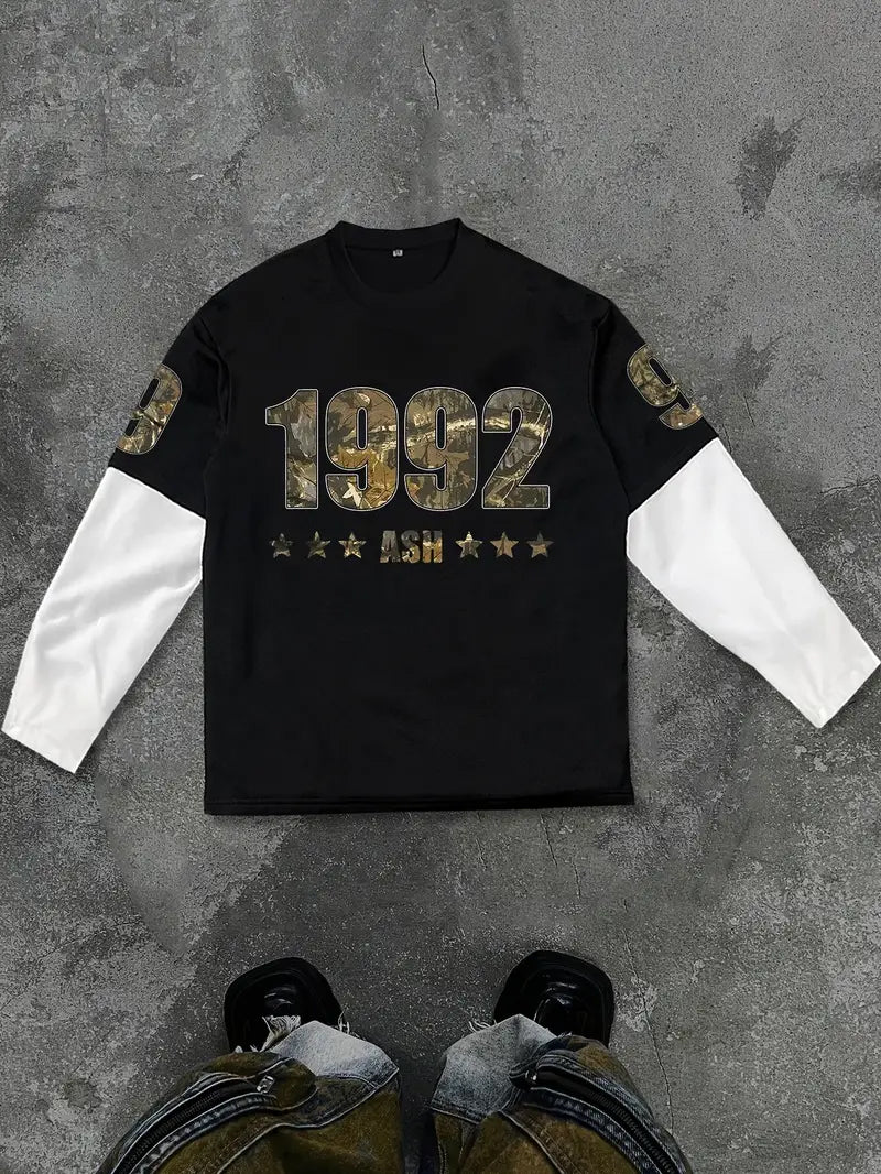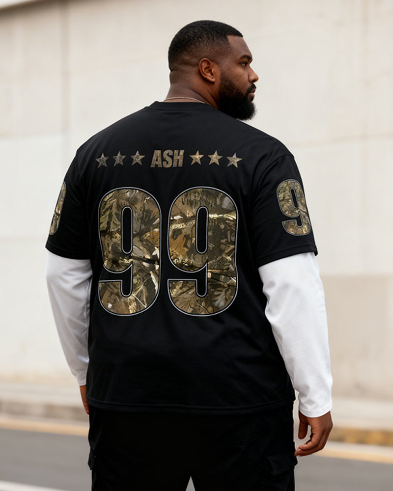 Big & Tall Men's Camouflage 1992 Printed Fake Two-piece Long-sleeved T-shirt