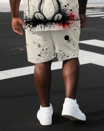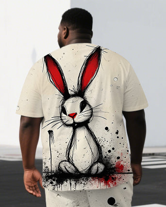 Big & Tall Men's Cartoon Sad Rabbit Sketch Back Print Short-Sleeve T-shirt 2-Piece Set